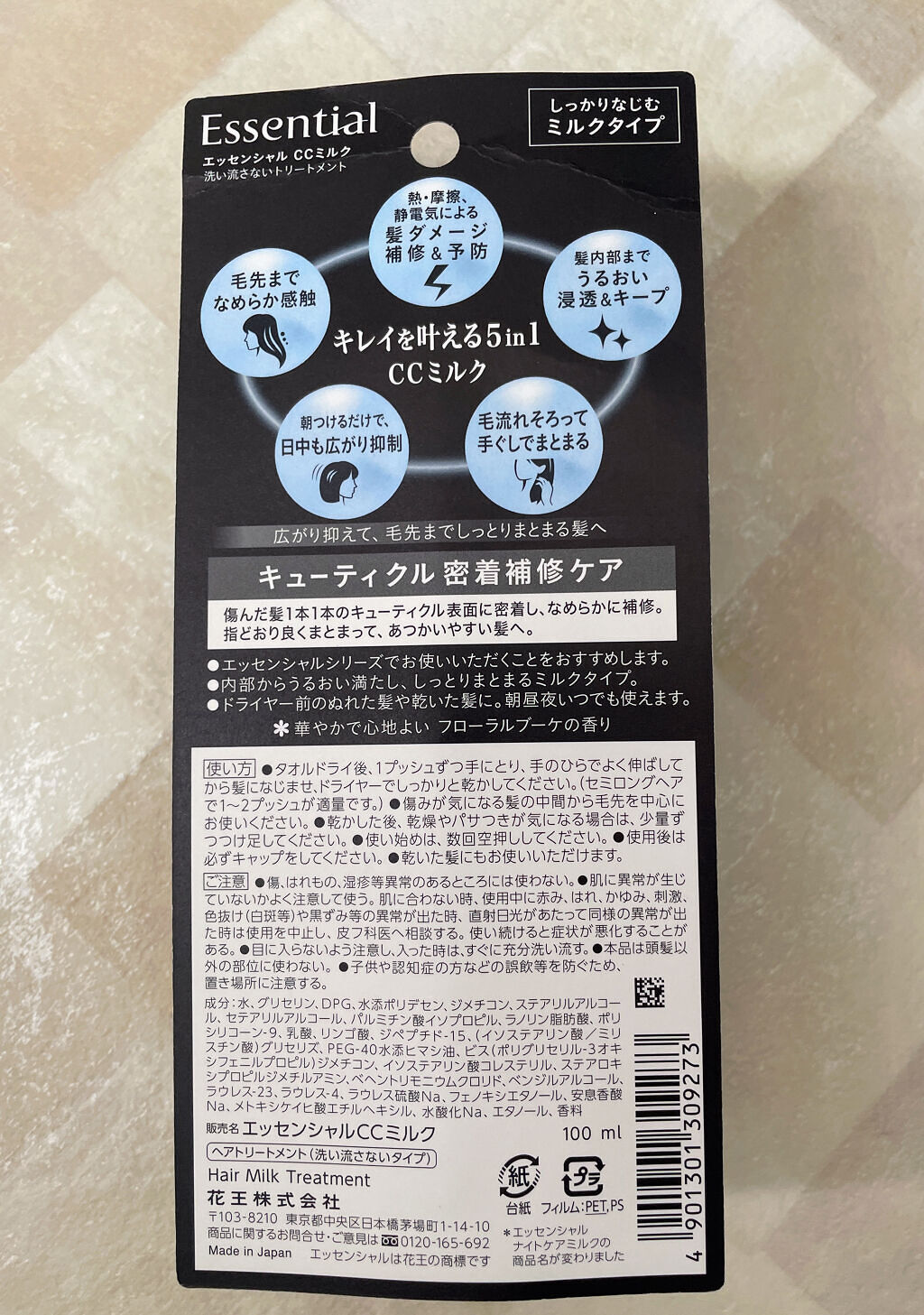 エッセンシャルCCミルク『広がり抑えて、毛先までしっとりまとまる髪へ』キレイを叶える5in1🤍①熱・ダメージによる髪ダメージ補修&予防②うるおい浸透&キープ③毛先までなめらか④日中も広がり抑制⑤手ぐしでまとまる・キューティクル密着補修ケア・内...