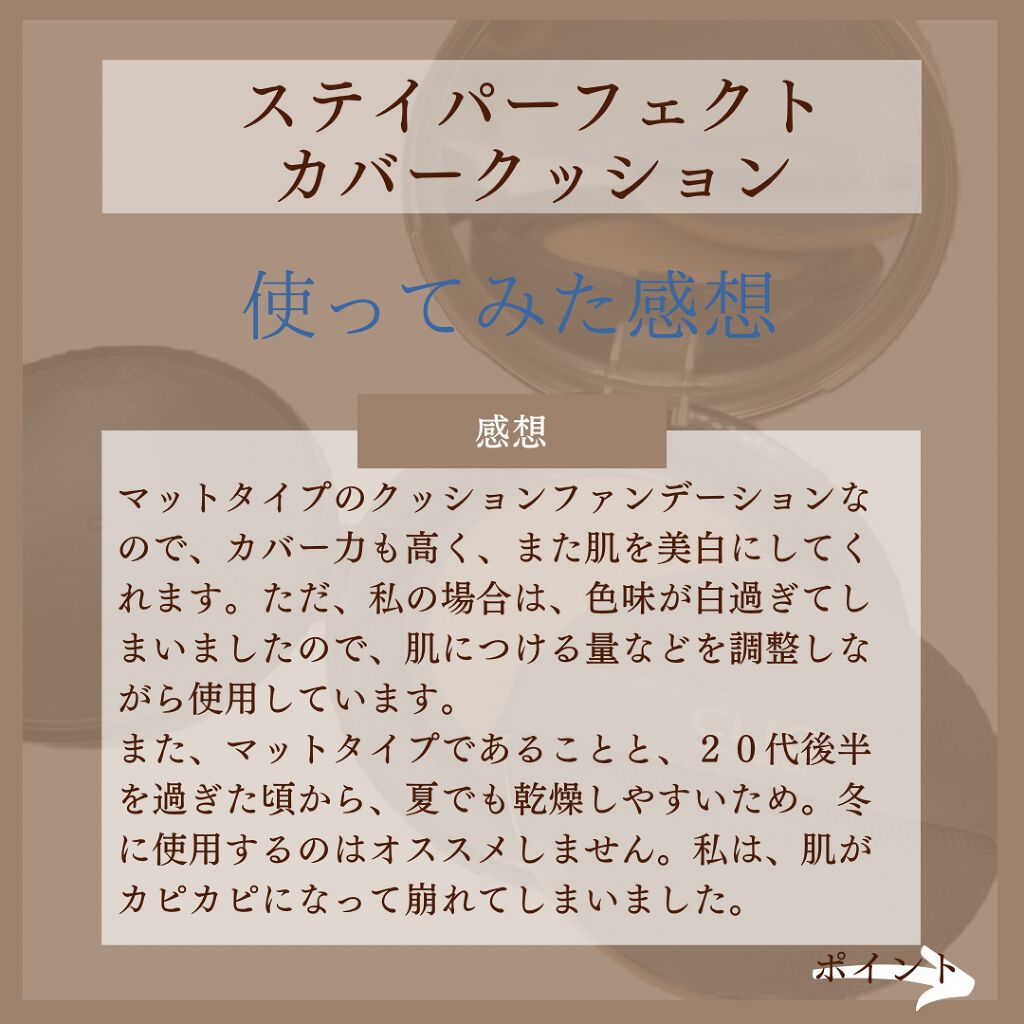 | ファンデーションランキング第3位 | メッシュ構造のクッションファンデーションで、そのテクスチャーはみずみずしくなめらか✨ 軽やかなつけ心地なのに、しっかりカバーしてくれます◎ | 詳細を見る | |