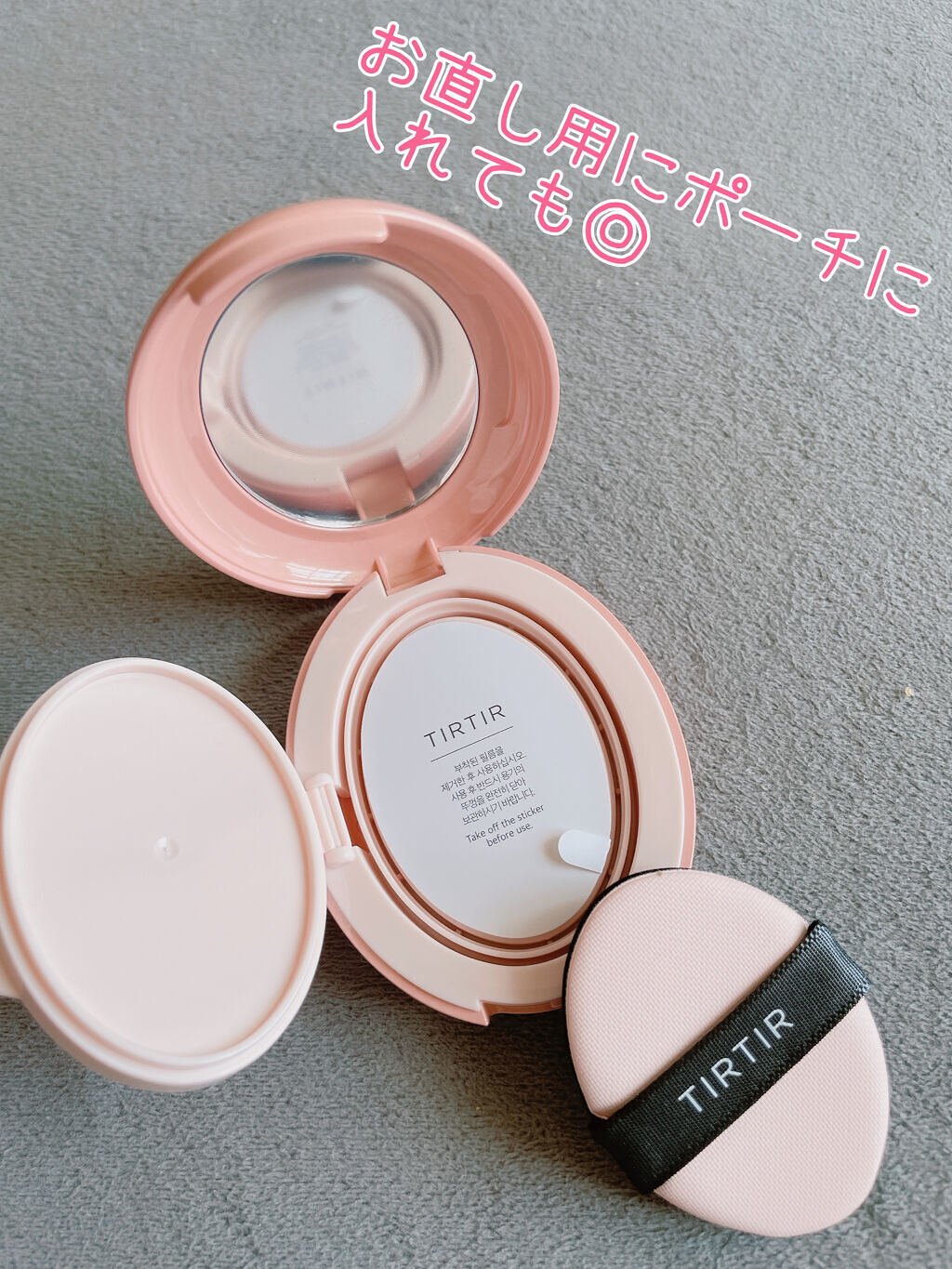 脂性肌の方におすすめ。 長時間メイクキープ。高いカバー力とさらっとした仕上がりが欲しい方へ! TIRTIRのクッションの中ではこのピンクのタイプはマットみたいですが少しツヤ感もあるように思いました✨ 日焼け止めとこのクッションのみでしたが崩れもほとんどなかった👍✨