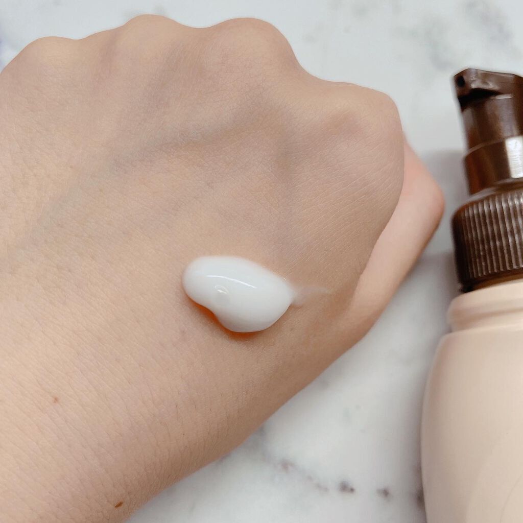 スキンケアとメイクが同時にできるセラム 日焼け止め機能 SPF50+PA+++ 美白ケア→グルタチオン配合 しわケア→ 高純度コラーゲン配合(水溶性コラーゲン、ヒドロライズドコラーゲン、アテロコラーゲン) ナチュラルなピンクの下地→ ダイヤモンドパウダー+サファイアパウダー+トルマリンパウダー+ジェイドパウダー+アメジストパウダー配合 使用感肌をワントーン明るく魅せたい時に使用してます♪ 美容成分のおかげか、ベタつきも乾燥もすることなくサラッとした仕上がりになります。 ポンプ式なのでドバッと出る心配がなく、ほんのりピンク色なので変に白浮きすることもありません。 少量で伸びるのでつけすぎは注意です☺️