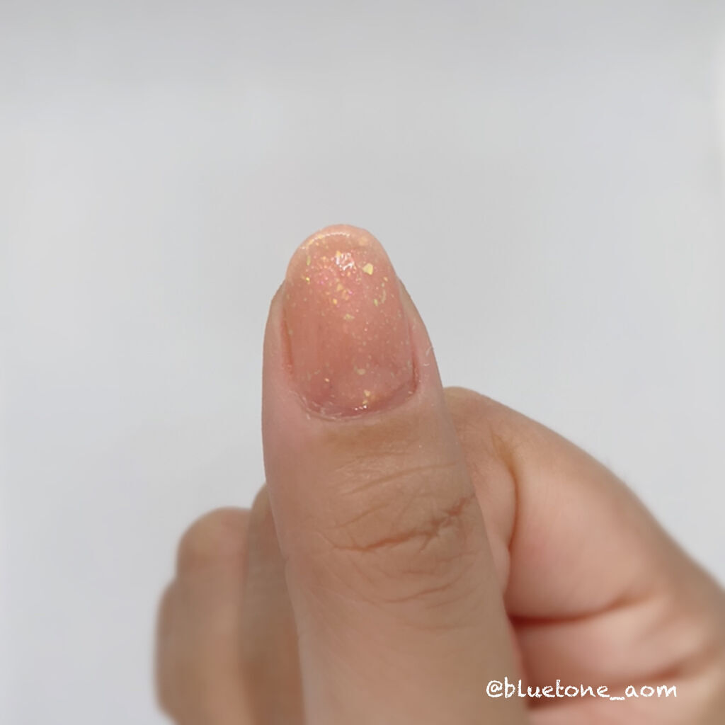 ラメがしっかりしてるし クリアカラーが入ってるから オーロラパウダー無しでも 充分キラキラしました! 反射強めのフィルムなので 実物はもっと うるうるとキラキラが強いです! ビー玉みたい🥺 ネイルシール長持ちさせたいけど ちょっと飽きてきたな〜って時とかに 全然違った印象になるのでオススメです! Seriaのベースジェル 本当にうるうるネイルしやすいので オススメしたい🙆♀️