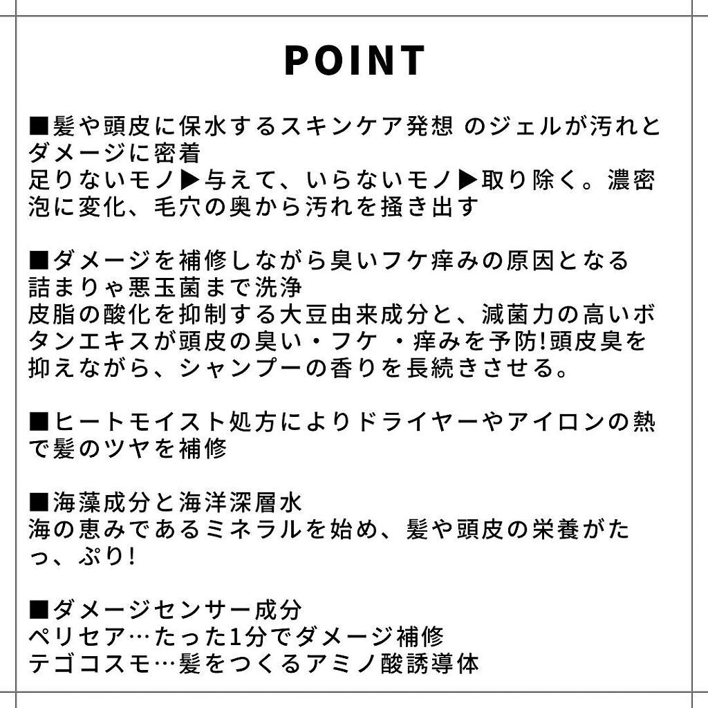 - <シャンプー 200g> 水、オレフィン(C14-16)スルホン酸Na、ラウラミドプロピルベタイン、グリセリン、コカミドDEA、ココイルグルタミン酸TEA、ポリクオタニウム-10、香料、ペンチレングリコール、海水、カラギーナン、PPG-3カプリリルエーテル、グアーヒドロキシプロピルトリモニウムクロリド、ジラウラミドグルタミドリシンNa、ステアロイルラクチレートNa、セバシン酸ジエチル、クレアチン、マルトデキストリン、ワサビノキ種子エキス、リンゴ酸、デキストラン、アセチルテトラペプチド-3、イリス根エキス、ミツイシコンブエキス、乳酸桿菌/豆乳発酵液、アカツメクサ花エキス、加水分解ダイズエキス、ボタンエキス、レモングラス葉/茎エキス、フムスエキス、ザクロ果皮エキス、オランダガラシ葉/茎エキス、オレンジ油、BG、PPG-7、安息香酸Na、塩化Na、水酸化K、フェノキシエタノール、EDTA-2Na、クエン酸Na、クエン酸 <トリートメント 150g> 水、グリセリン、セタノール、ステアリルアルコール、ベヘントリモニウムクロリド、イソステアリン酸水添ヒマシ油、トリエチルヘキサノイン、ステアロキシプロピルトリモニウムクロリド、香料、海水、カラギーナン、PPG-3カプリリルエーテル、ジラウラミドグルタミドリシンNa、ステアロイルラクチレートNa、セバシン酸ジエチル、メドウフォーム油、ヒドロキシエチルウレア、グアーヒドロキシプロピルトリモニウムクロリド、ヒドロキシプロピルキトサン、アルギニン、ヒポファエラムノイデス果実油、バオバブ種子油、アブラナ種子油、マカデミア種子油、アーモンド油、ブドウ種子油、シア脂油、ツバキ種子油、アボカド油、ホホバ種子油、ヘーゼルナッツ油、アルガニアスピノサ核油、カニナバラ果実油、月見草油、コメ胚芽油、オレンジ油、ザクロ果皮エキス、イリス根エキス、アセチルテトラペプチド-3、アカツメクサ花エキス、乳酸桿菌/豆乳発酵液、加水分解ダイズエキス、ボタンエキス、レモングラス葉/茎エキス、BG、トリポリヒドロキシステアリン酸ジペンタエリスリチル、変性アルコール、デキストラン、ステアリン酸グリセリル、フマル酸、水酸化Na、エタノール、フェノキシエタノール、クエン酸、トコフェロール、パルミチン酸アスコルビル、ジパルミチン酸アスコルビル