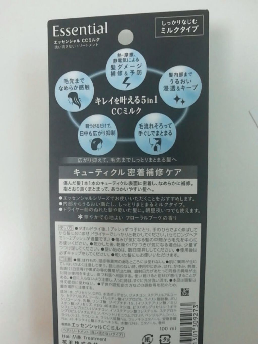 エッセンシャルCCミルク『広がり抑えて、毛先までしっとりまとまる髪へ』キレイを叶える5in1🤍①熱・ダメージによる髪ダメージ補修&予防②うるおい浸透&キープ③毛先までなめらか④日中も広がり抑制⑤手ぐしでまとまる・キューティクル密着補修ケア・内...