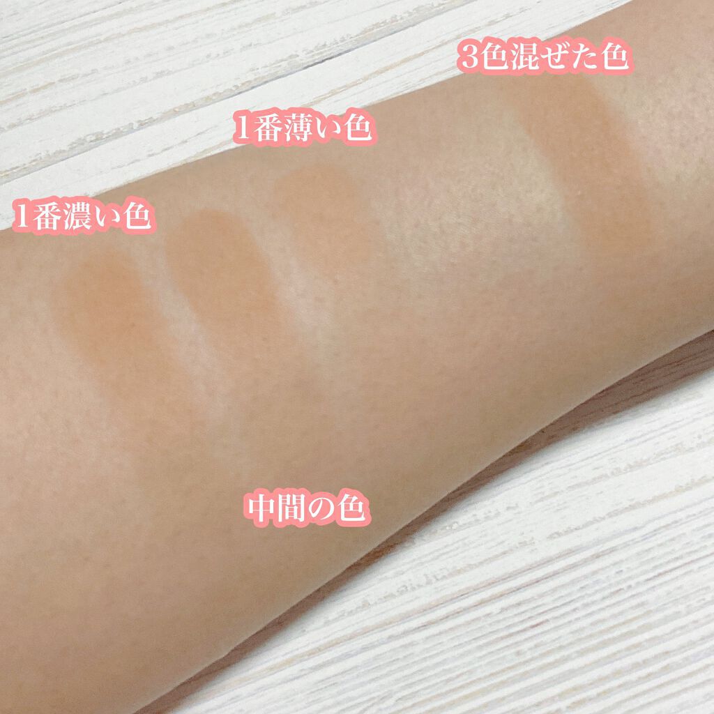 全3色展開で自分の肌トーンに合わせて選べるので、春夏の私はやや黄み寄りの1号アーモンドブラウンをチョイス🤎 一番使う中間色が多めに入っているから、全色バランスよく使えて嬉しい✨ ふわっと自然に色づいて馴染むから、“塗ってます感”が出にくい!まるで元から骨格が整っているような立体感&小顔を演出👼🏻