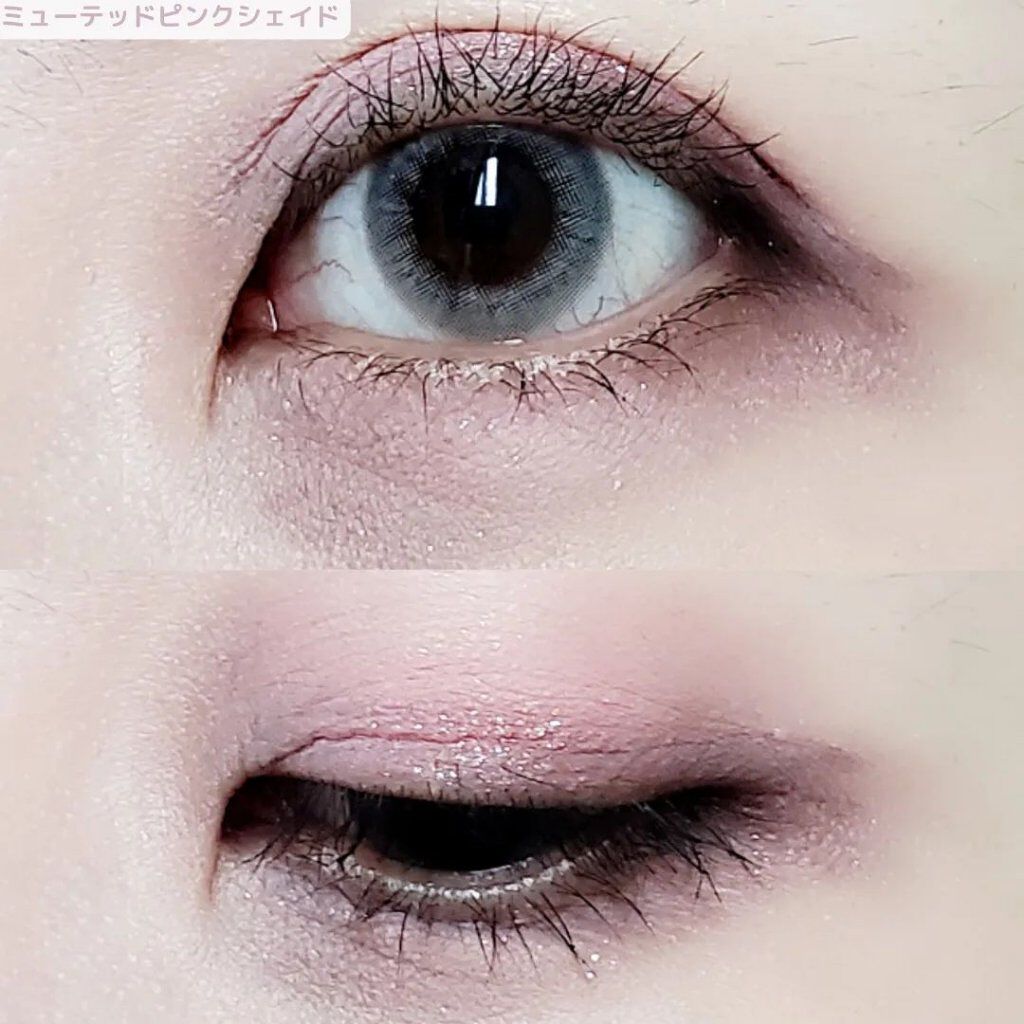 なんとなくだけど左側がブルベ寄り、右側がイエベ寄りの色味でニュートラルなパレットかなと思いました。 目元写真みると発色薄く見えるかなとおもいますが朝メイクして、直さず夜に撮ったのでこんな感じです。 カラコンはmimucoのブラウンフォンデュミムコのカラコンはどれも自然でかわいいです。