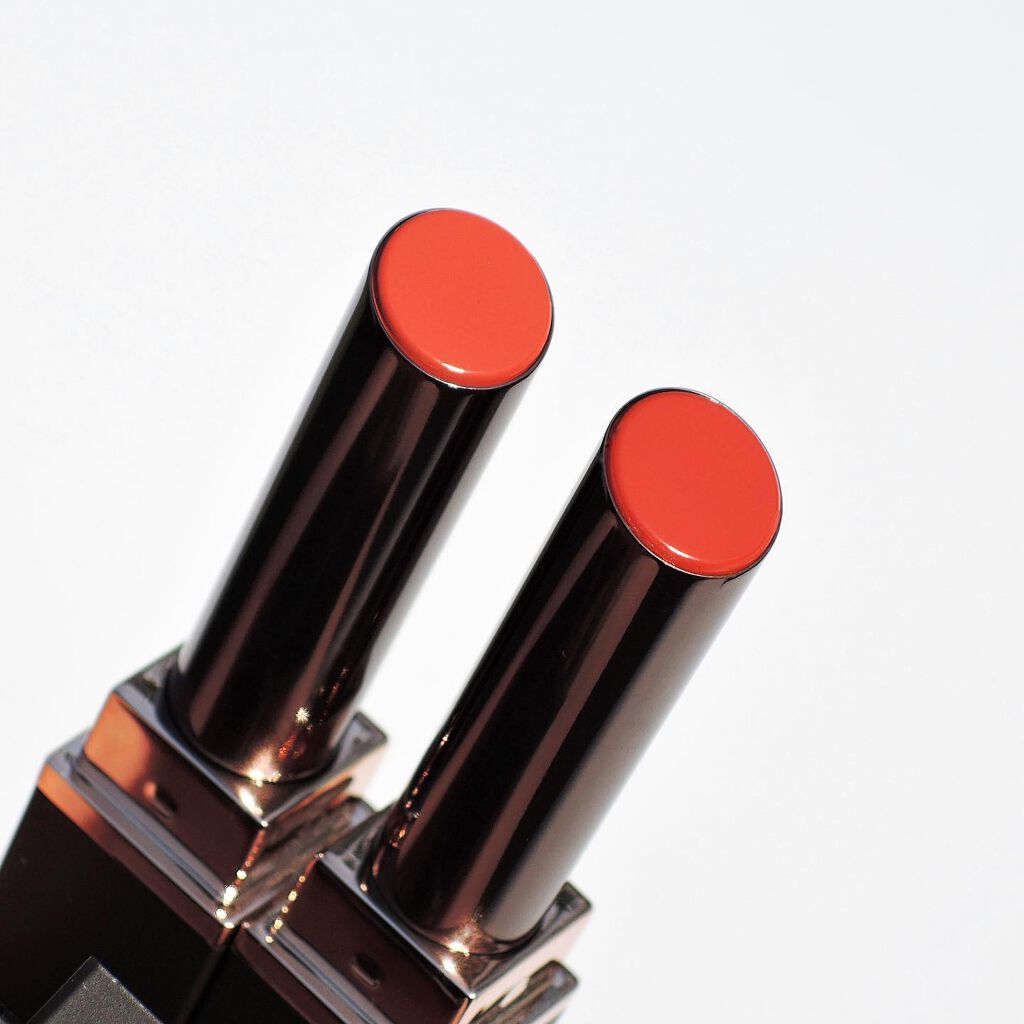 コーラルっぽいライトピンクなんですが、ローティントは重ねるほど鮮やかに発色するので赤みが強かった気がしますね🤔 イエベさんもブルベさんも使えそう!私の唇では元々赤みが強く出やすいみたいなんですがでもパキッとした赤も好みなので気にならずです✨ 落ちにくさは最強クラスですね💪🔥