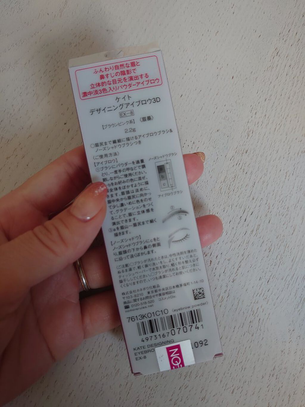 ケイト『デザイニングアイブロウ3Dフィット』を使ってみました私が使った色はEX-4ライトブラウンブラシはノーズシャドウブラシワイドアイブロウブラシ2種類あります!手の甲で調節しながら使います(*´˘`*)♡コンパクトも小さめで持ち運びしやすい...