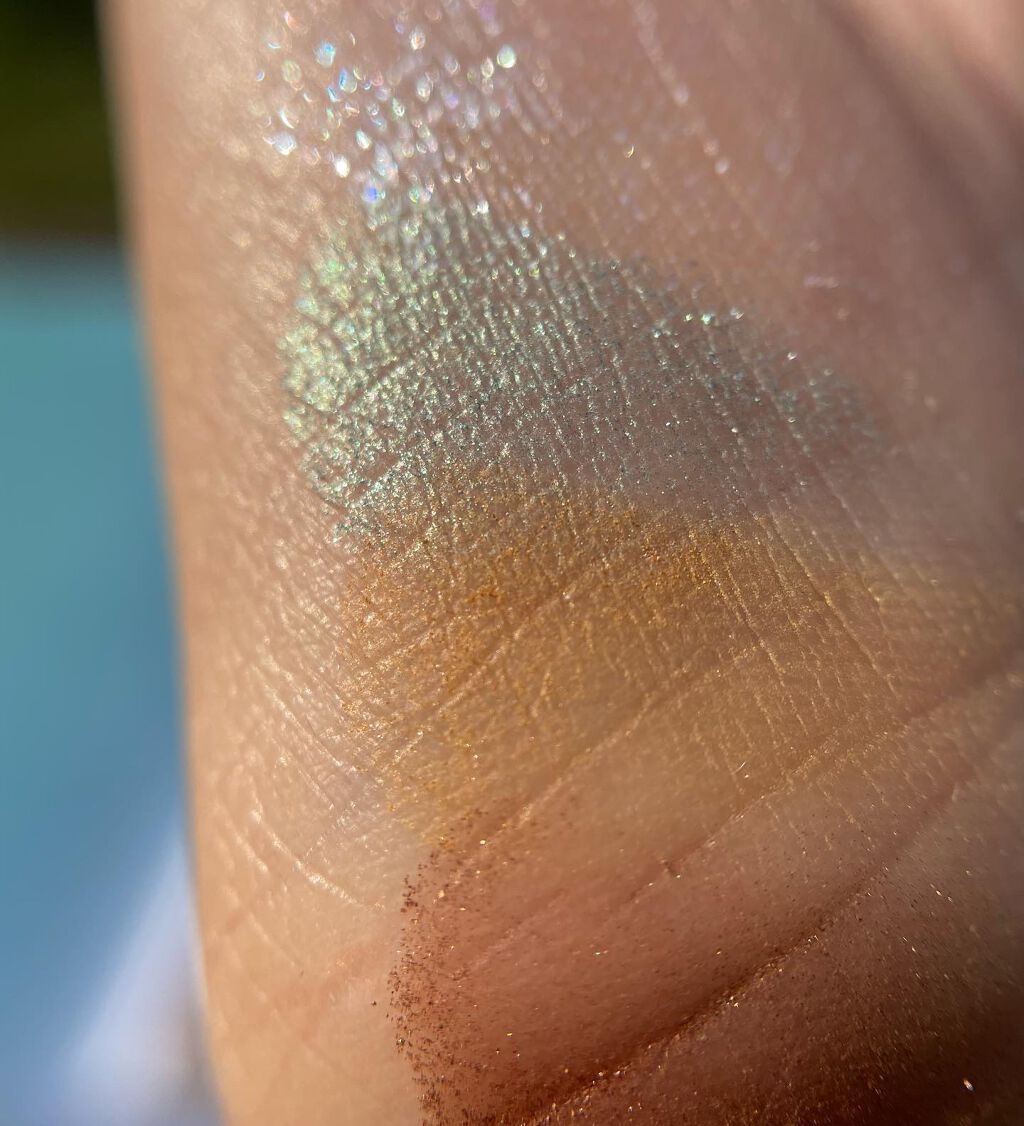 ビーアイドルの中で今までで1番好きかも❤️ 粉質は結構柔らかめ!スウォッチみたら淡い感じするけど目元に塗ると思ったよりしっかり発色🤗 ラメの粒は大きめかも🙋♀️ だからやっぱり頬にラメはちょっと落ちるよね😅 配色はどれ使ってもどの組み合わせでも可愛いんだよな〜😌❤️