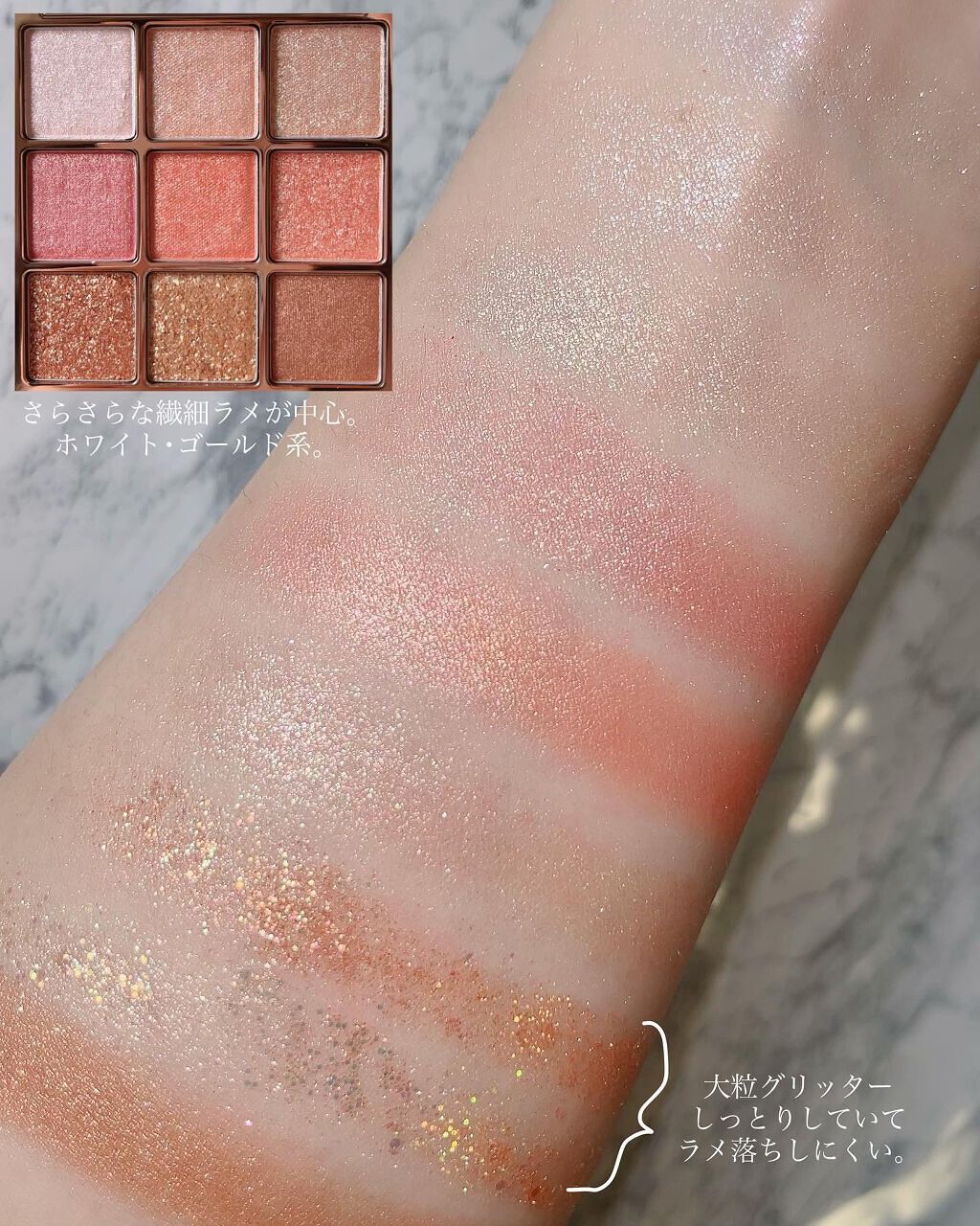- 全色グリッターのパレットで目元を華やかに演出します。