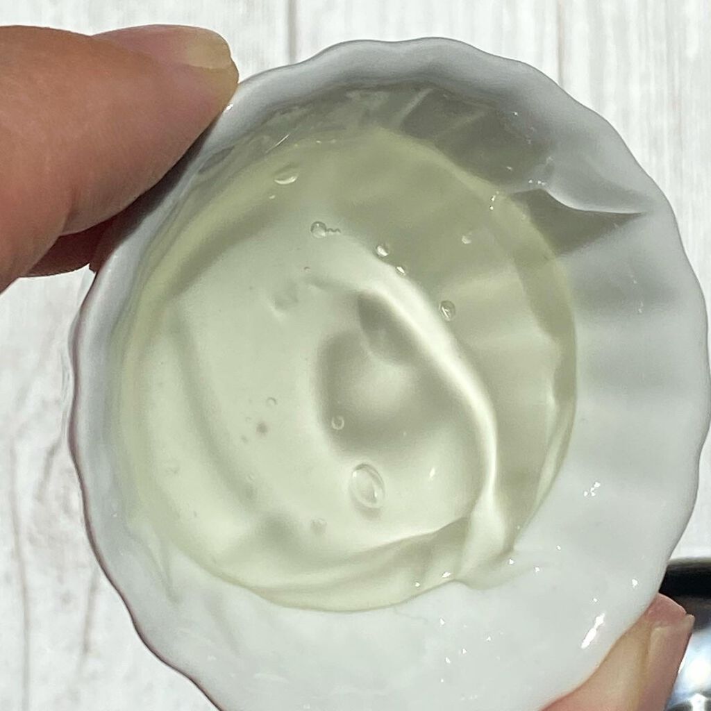 手に取ると、透明のさらっとした液体。 ですが、お肌に乗せるととろみとも違うのですがうすーい膜が張るような感じ✨ 肌馴染みが良くて、しっとりとしました🥰 まさに、水分とお肌が一体化するような感じです。 何の香りかはわかりませんが、心地よい香りがかすかにあります💕💕