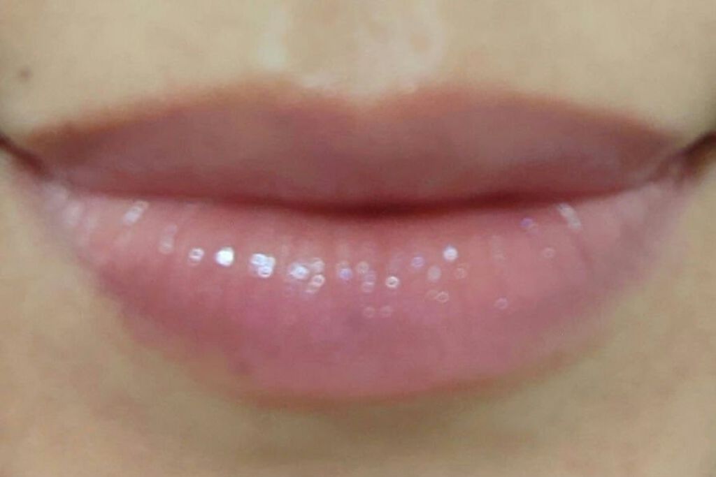 色は紫が入ってるような、淡いピンク色で青み寄りのピンクメイクをする時に凄く合います💕 青ラメ伝わりますかね?他のラメが入ってないリプモンと比べると、ツヤツヤした唇に見える気がしました。 ティッシュオフで擦っても中々青ラメが取れなかったです。