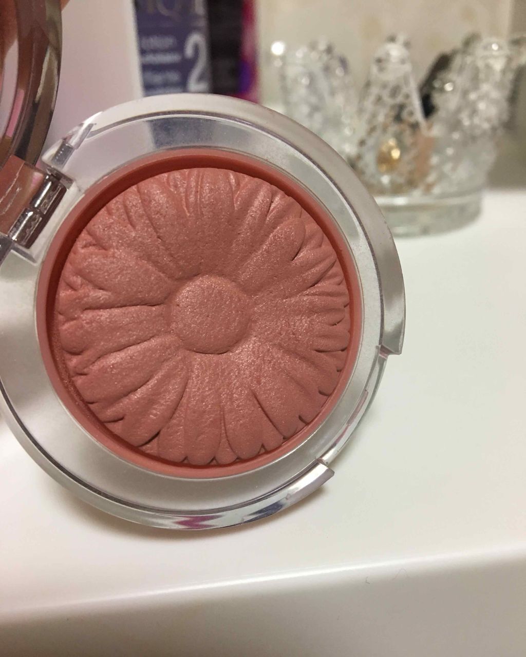 CLINIQUEチークポップ18ピンクハニーポップガーベラが型押しされていて可愛い、パウダリーチーク💕あたたかみのあるピンクベージュのような色で少しツヤがあって可愛い!ローラメルシエのチャイと似ていますが、ピンクハニーポップの方が明るめかな。...