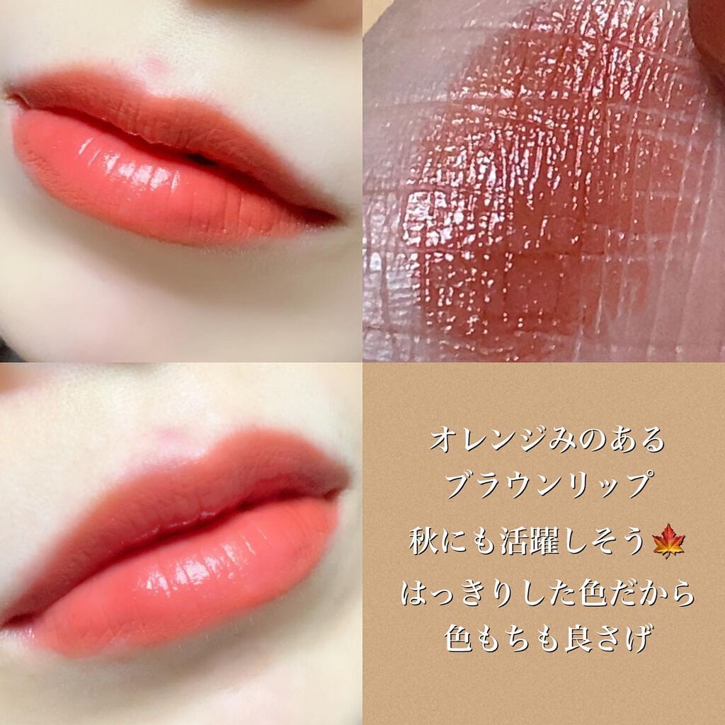 新色がすごく可愛いカラー😍 黄みのピンクベージュだった😂 赤みを抑えた深みブラウン。 色もちがすごい!と評価が高いけど 私は乾燥を感じましたが私はかなりの乾燥肌で唇も結構乾燥するからかも カラバリ豊富でオシャレカラー多い 色変わりがしないのはピカイチ 私の唇には合わなかった🥲 ブルベさん向きのカラーは少なめ