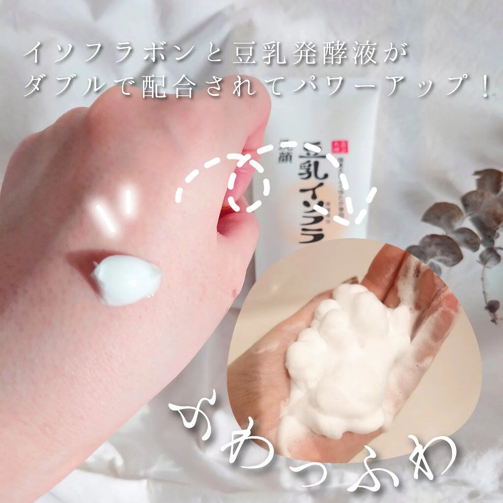 - 豆乳発酵液、肌荒れ防止有効成分*1に加え、ビタミンC誘導体*2を配合。洗いながら、うるおいと透明感のある肌に導きます。もこもこ泡でクレンジング力もアップし、毛穴の中まですっきりキレイに。 *1 グリチルリチン酸ジカリウム(薬用クレンジング洗顔 N、薬用美白ミスト化粧水、とろんと濃ジェル 薬用美白 N) *2 リン酸L‐アスコルビルマグネシウム(保湿成分)