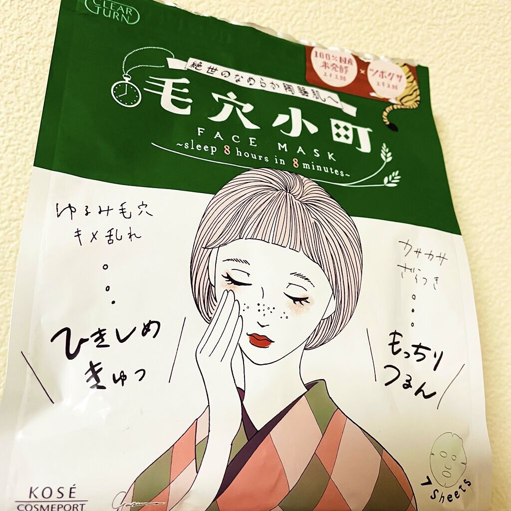 - 毛穴・肌あれが同時にケアできる、毛穴小町マスク! ①毛穴目立ち&肌あれをダブルでケア!なめらか陶器肌へ 水分・油分をバランスよく配合したみずみずしい美容液で、乾燥や皮脂による毛穴目立ちやあれ肌もケアします。キメのととのった、つるんとなめらかな陶器肌に導きます。 角質柔軟成分※3配合。肌をやわらげます。 100%国産米発酵エキス・米ぬかエキス・BG(保湿)をはじめとする発酵ライスモイスチャーCPX配合。ふっくらと保湿します。 ツボクサエキス・ドクダミエキス・BG(保湿)配合。ツボクサエキスは今話題のCICA成分です。肌をひきしめととのえます。 ※3 角質柔軟成分はリンゴ酸 ②角質ケアできる凸凹高密着シート コットン生まれでやわらかな肌触りの国産シートを採用。シートマスクの表面には凸凹のエンボス加工を施しているため、密着性が高く、はがしたマスクでやさしく顔をふきとることで角質ケアもできます。 ③心地よい眠りにみちびくようなリラックスフローラルの香り(天然香料配合) ④やさしい使い心地 弱酸性・無着色・無鉱物油・パラベンフリー・紫外線吸収剤フリー・シリコーンフリーのやさしい使い心地です。