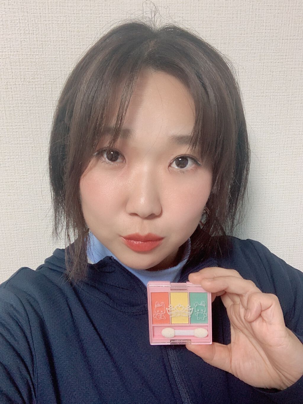 フェアリーぽい夢かわなカラーが3色セットになった配色。ブルー、ピンク、パープルの全部に微細なパールが入っているよ! こういうカラーなのに白浮きせずに、見たまま発色してくれたよ。単色ずつもぼかし塗りしやすいのも良かった。 ブルーはハイライト的な立体感を出せたからまぶたの中央や涙袋に乗せてもかわいいと思う〜。