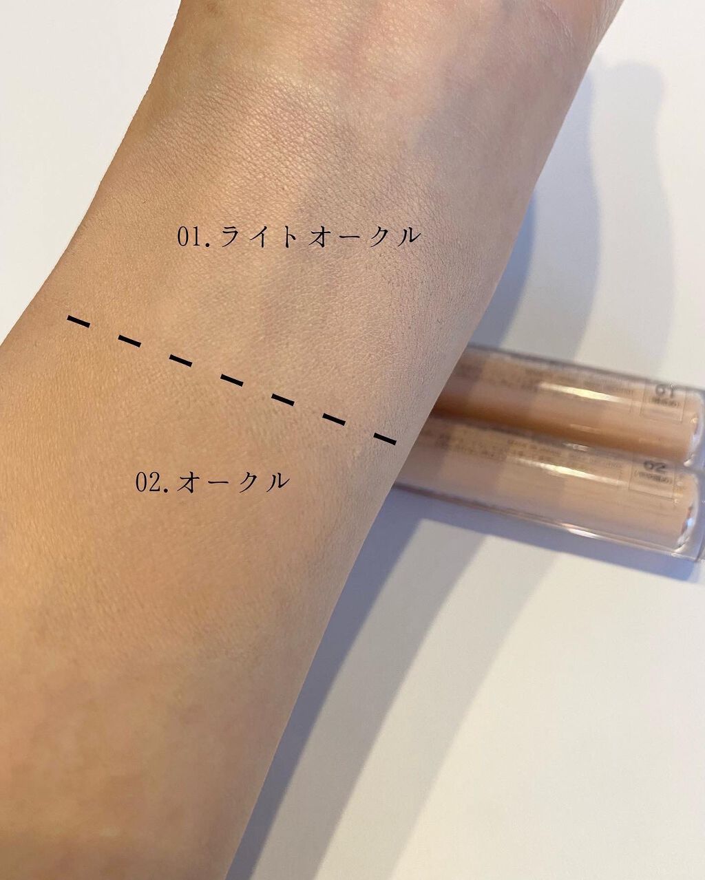 - <01 ライトオークル> 水、シクロペンタシロキサン、セチルPEG/PPG-10/1ジメチコン、グリセリン、BG、トリメチルシロキシケイ酸、ペンチレングリコール、リンゴ酸ジイソステアリル、ジイソステアリン酸ポリグリセリル-2、ジエチルヘキサン酸ネオペンチルグリコール、ジグリセリン、ベタイン、ポリメチルシルセスキオキサン、硫酸Mg、マイカ、ジメチコン、ソルビトール、フェノキシエタノール、ジフェニルシロキシフェニトリメチコン、(ジメチコン/ビニルジメチコン)クロスポリマー、トコフェロール、ヒアルロン酸Na、オリーブ果実油、ホホバ種子油、メドウフォーム油、パルミチン酸レチノール、コーン油、クダモノトケイソウ果実エキス、アロエベラ葉エキス、(+/−)酸化チタン、タルク、酸化鉄、水酸化Al、トリエトキシカプリリルシラン、ステアリン酸 <02 オークル> 水、シクロペンタシロキサン、セチルPEG/PPG-10/1ジメチコン、グリセリン、BG、トリメチルシロキシケイ酸、ペンチレングリコール、リンゴ酸ジイソステアリル、ジイソステアリン酸ポリグリセリル-2、ジエチルヘキサン酸ネオペンチルグリコール、ジグリセリン、ベタイン、ポリメチルシルセスキオキサン、硫酸Mg、マイカ、ジメチコン、ソルビトール、フェノキシエタノール、ジフェニルシロキシフェニルトリメチコン、(ジメチコン/ビニルジメチコン)クロスポリマー、トコフェロール、ヒアルロン酸Na、オリーブ果実油、ホホバ種子油、メドウフォーム油、パルミチン酸レチノール、コーン油、クダモノトケイソウ果実エキス、アロエベラ葉エキス、(+/−)酸化チタン、タルク、酸化鉄、水酸化Al、トリエトキシカプリリルシラン、ステアリン酸