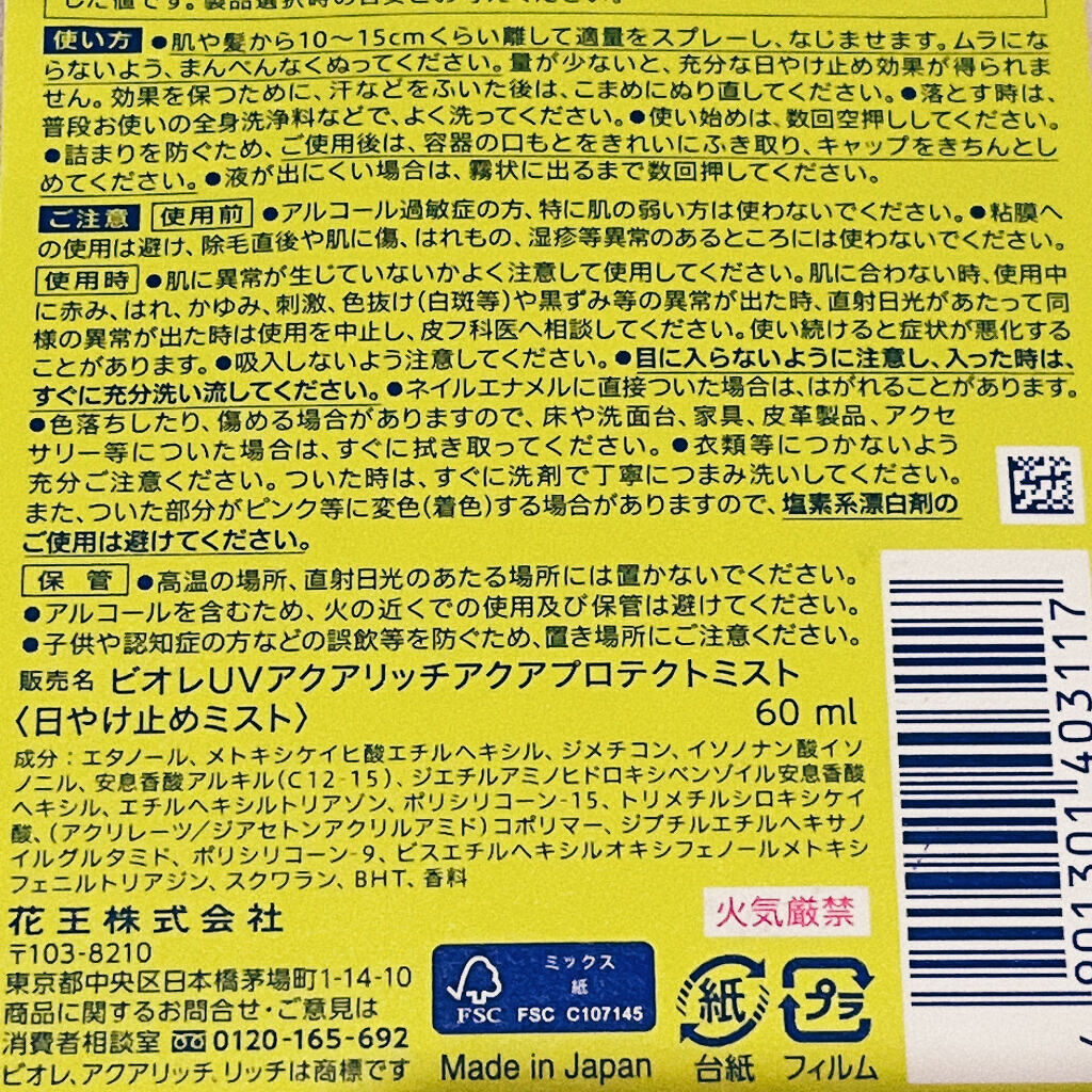 ビオレ ビオレUV アクアリッチ アクアプロテクトミスト | 1,078円 |