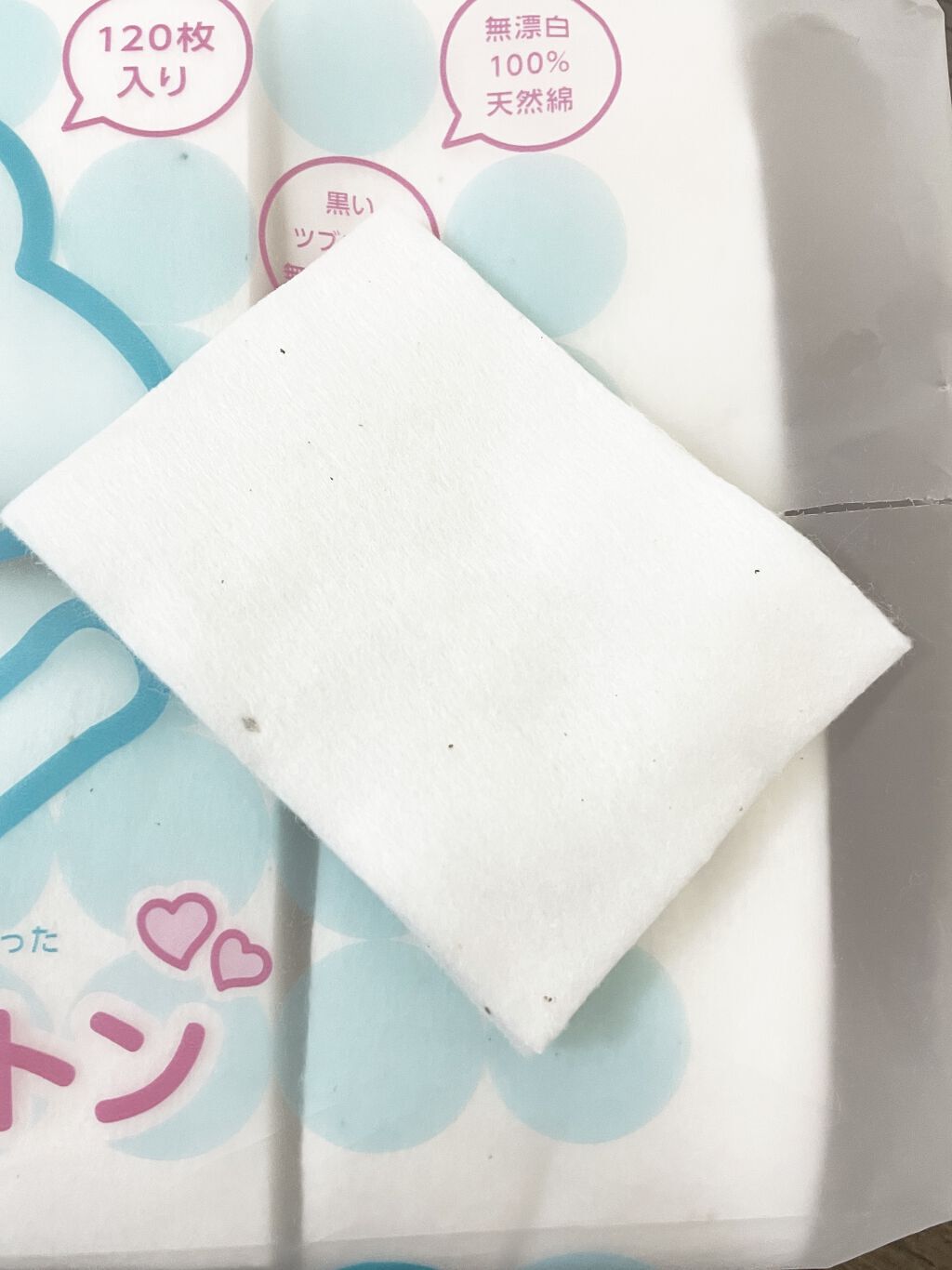 120枚入りの大容量なコットンです。 サイズは大きめなので化粧水を含ませてマスクにするのにも◎ 拭き取り化粧水をつけて使用していますが拭き取り後もそこまで毛羽立たないので肌にコットンが付きづらいのが嬉しいですね😊 コスパを考えるとかなりおすすめです✨