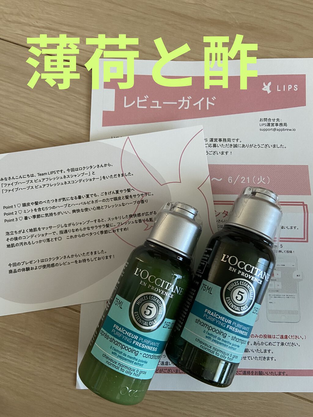 ロクシタン様から提供いただきました。L'OCCITANEピュアフレッシュシャンプー/コンディショナーベタつきがちな暑い夏にぴったりピュアフレッシュシャンプー爽快な使い心地で、頭皮スッキリ✨泡立ちもいいしベタつきを洗い流してくれてスッキリしまし...