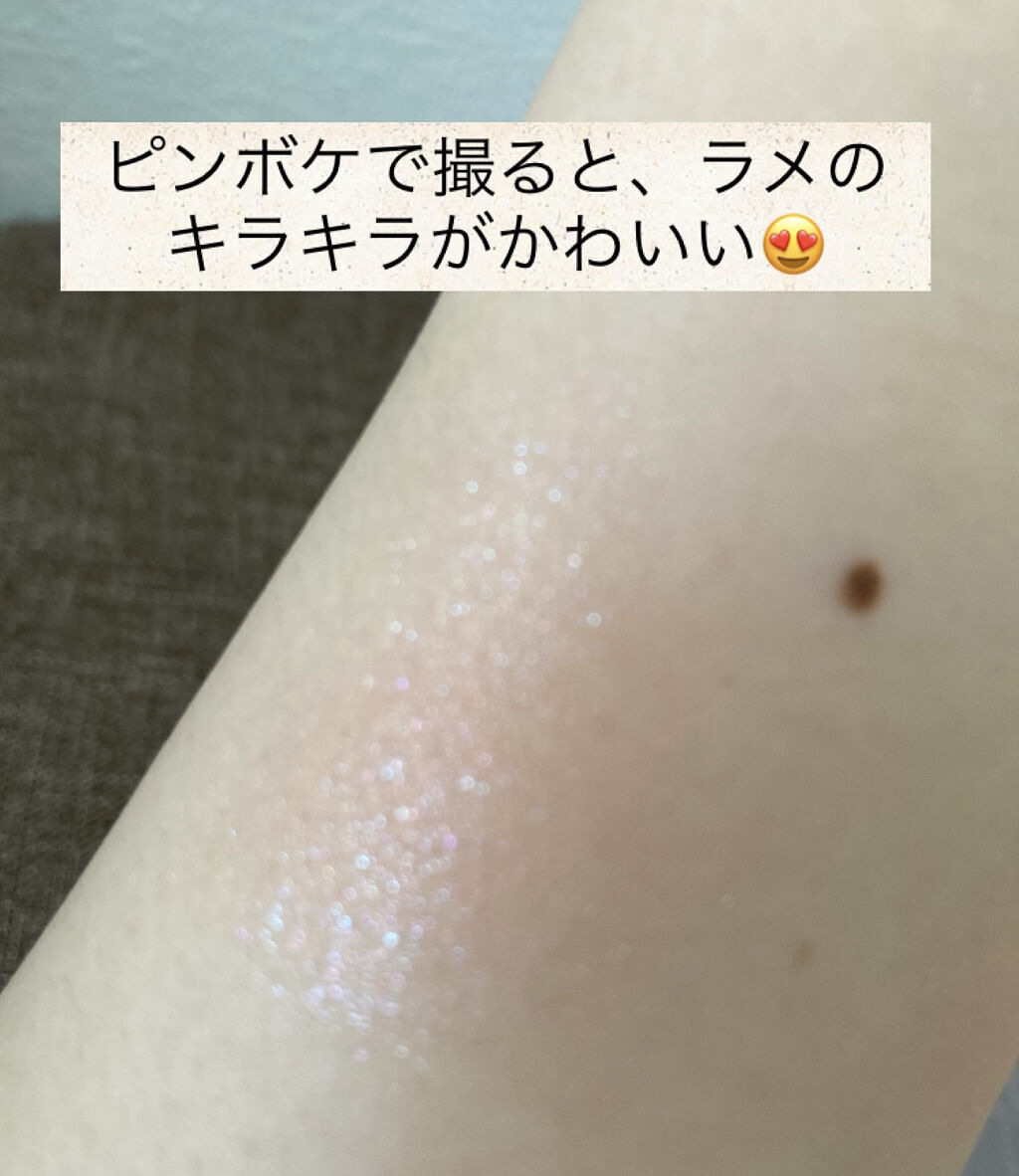 ラメ入りのキラキラなリキッドライナーは、私の中でメイクに欠かせないアイテムの一つです! 目の下をキラキラさせるだけで、その日の気分が上がるから大好きなんです♡ こちらを塗ると、いろんな色のラメがキラキラと輝くのでとても綺麗です! 瞼に使うと角度によって光るラメがかわいくてすごく良かった♡ 乾くのに少し時間がかかる気がする…のと、取れ方が少し汚い気がします。 使い方を工夫しないとラメが剥がれる⁈感じで落ちちゃった事があったので、少し使うのが難しく感じました。 お湯で落とせる分、落ちやすいのかな🧐 多色ラメがかわいかったので、落ちやすいのが少し残念でした🥺なので、☆3つかな。