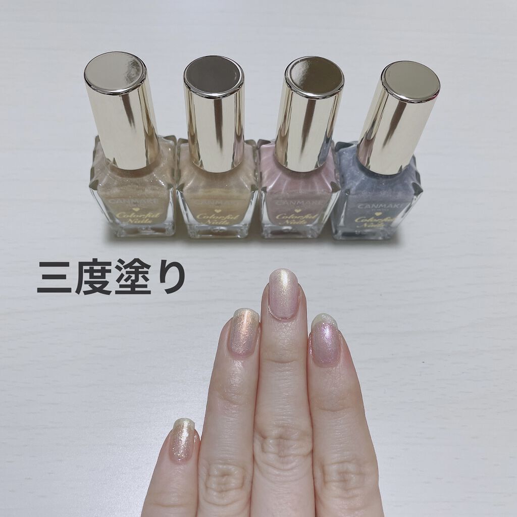 キャンメイクのカラフルネイルズの透明度指数0%のに変えてから、1度でしっかり色が付きます! 落とした時に傷んでないΣ( ˙꒳˙ ) そしてキャンメイクのカラフルネイルズ 1度でしっかり色付くから、時間短縮! ネイル初心者の方には、プチプラ?で失敗してもまぁいっか!と思える値段も嬉しいところです(* ˊ꒳ˋ*)