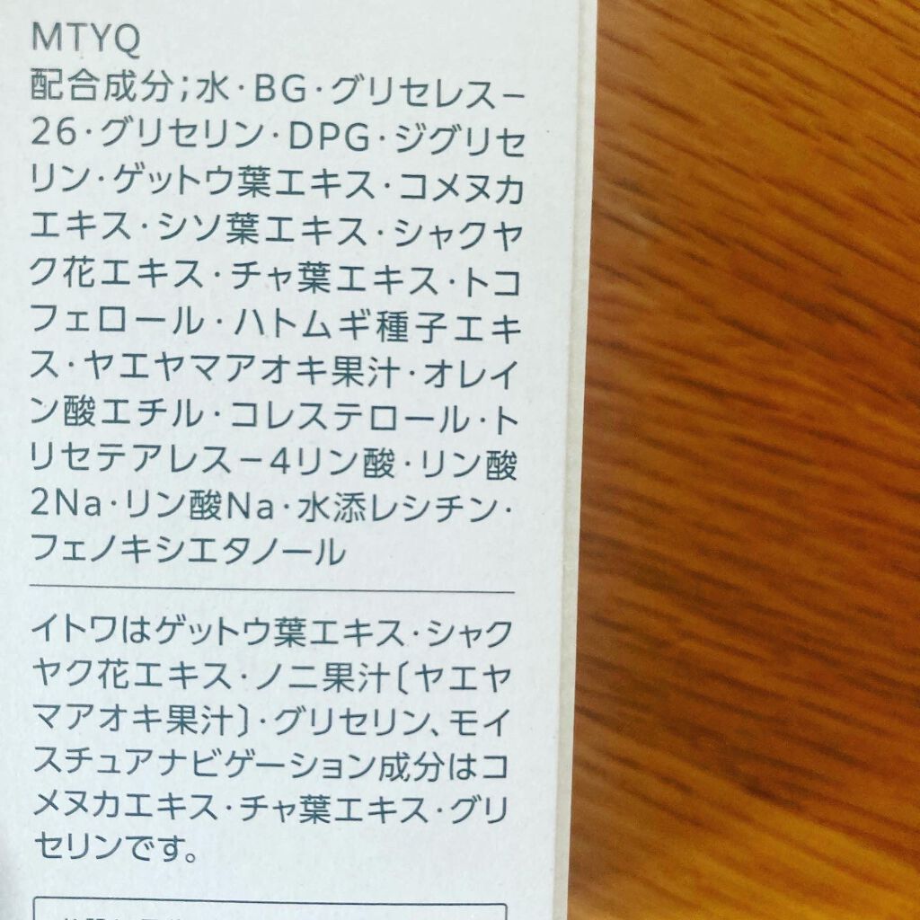 - <200ml> 水、BG、グリセレス-26、グリセリン、DPG、ジグリセリン、ゲットウ葉エキス、コメヌカエキス、シソ葉エキス、シャクヤク花エキス、チャ葉エキス、トコフェロール、ハトムギ種子エキス、ヤエヤマアオキ果汁、オレイン酸エチル、コレステロール、トリセテアレス-4リン酸、リン酸2Na、リン酸Na、水添レシチン、フェノキシエタノール <つめかえ用 170ml> 水、BG、グリセレス-26、グリセリン、DPG、ジグリセリン、ゲットウ葉エキス、コメヌカエキス、シソ葉エキス、シャクヤク花エキス、チャ葉エキス、トコフェロール、ハトムギ種子エキス、ヤエヤマアオキ果汁、オレイン酸エチル、コレステロール、トリセテアレス-4リン酸、リン酸2Na、リン酸Na、水添レシチン、フェノキシエタノール <ミドルサイズ 125ml> 水、BG、グリセレス-26、グリセリン、DPG、ジグリセリン、ゲットウ葉エキス、コメヌカエキス、シソ葉エキス、シャクヤク花エキス、チャ葉エキス、トコフェロール、ハトムギ種子エキス、ヤエヤマアオキ果汁、オレイン酸エチル、コレステロール、トリセテアレス-4リン酸、リン酸2Na、リン酸Na、水添レシチン、フェノキシエタノール <トライアル 30ml> 水、BG、グリセレス-26、グリセリン、DPG、ジグリセリン、ゲットウ葉エキス、コメヌカエキス、シソ葉エキス、シャクヤク花エキス、チャ葉エキス、トコフェロール、ハトムギ種子エキス、ヤエヤマアオキ果汁、オレイン酸エチル、コレステロール、トリセテアレス-4リン酸、リン酸2Na、リン酸Na、水添レシチン、フェノキシエタノール <StB23> 水、BG、グリセレス-26、グリセリン、DPG、ジグリセリン、ゲットウ葉エキス、コメヌカエキス、シソ葉エキス、シャクヤク花エキス、チャ葉エキス、トコフェロール、ハトムギ種子エキス、ヤエヤマアオキ果汁、オレイン酸エチル、コレステロール、トリセテアレス-4リン酸、リン酸2Na、リン酸Na、水添レシチン、フェノキシエタノール