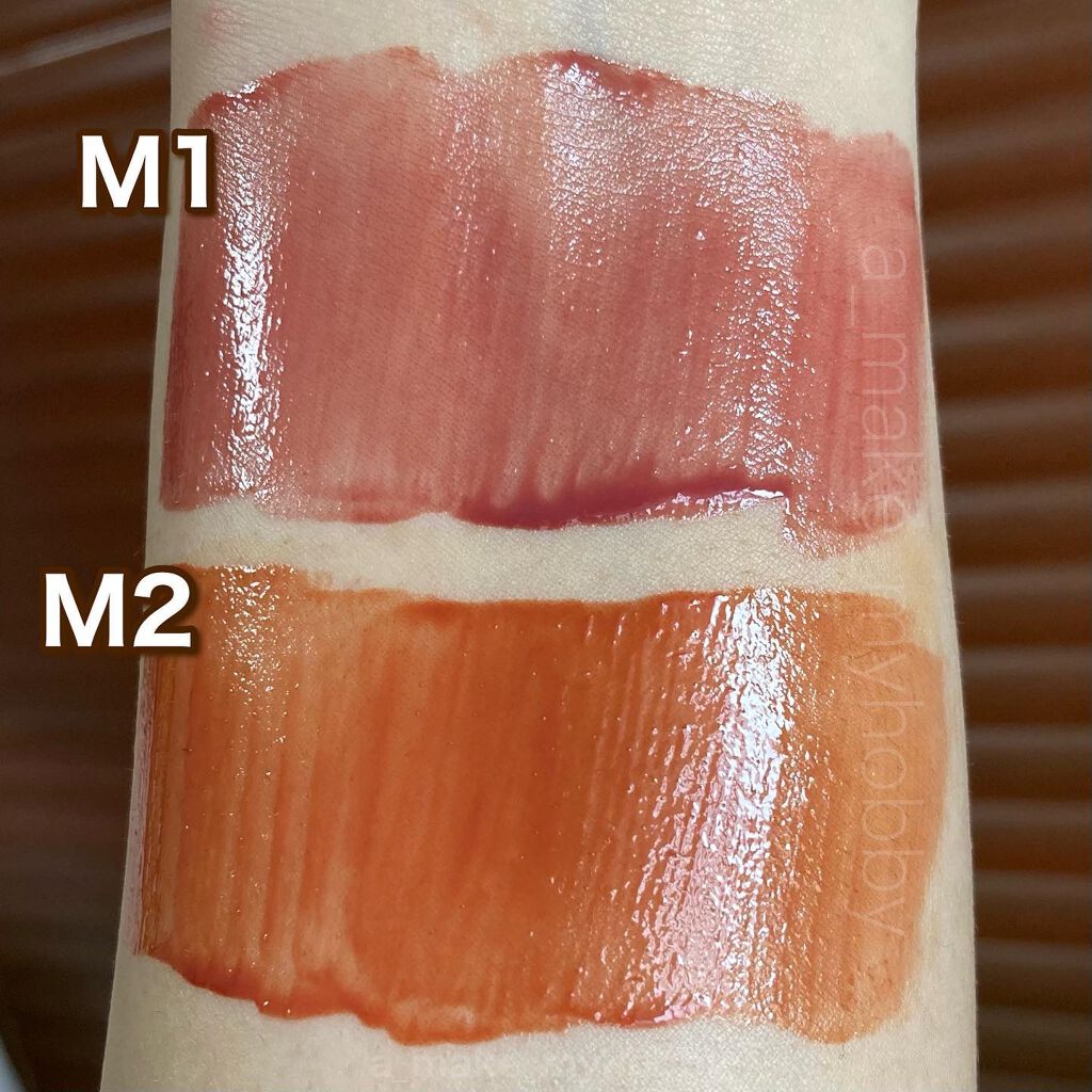 - <M1 ダスティローズ> 水、シリカ、ジフェニルシロキシフェニルトリメチコン、エタノール、ラウロイルグルタミン酸ジ(フィトステリル/オクチルドデシル)、BG、ジフェニルジメチコン、セテス-10、グリセリン、ジカプリン酸ネオペンチルグリコール、オクチルドデカノール、セチルPEG/PPG-10/1ジメチコン、ダイマージリノール酸(フィトステリル/イソステアリル/セチル/ステアリル/ベヘニル)、ダイマージリノール酸ダイマージリノレイル、(アクリル酸ヒドロキシエチル/アクリロイルジメチルタウリンNa)コポリマー、イソヘキサデカン、フェノキシエタノール、メチルパラベン、ポリソルベート60、トコフェロール、エチルパラベン、デヒドロ酢酸Na、リン酸2Na、リン酸Na、シメチコン、スクワラン、ハチミツ、ステアリン酸ソルビタン、ステアリン酸グリセリル、ローヤルゼリーエキス、オレイン酸ポリグリセリル-10、ヒアルロン酸Na、セルロースガム、ローズマリー葉エキス、カミツレ花エキス、水溶性コラーゲン、トリイソステアリン酸ポリグリセリル-2、酸化チタン、酸化鉄、黄4、赤227、水酸化Al、PVP、ポリアスパラギン酸Na、青1、キサンタンガム、EDTA-2Na <M2 ウォームオレンジ> 水、シリカ、ジフェニルシロキシフェニルトリメチコン、エタノール、ラウロイルグルタミン酸ジ(フィトステリル/オクチルドデシル)、BG、ジフェニルジメチコン、セテス-10、グリセリン、ジカプリン酸ネオペンチルグリコール、オクチルドデカノール、セチルPEG/PPG-10/1ジメチコン、ダイマージリノール酸(フィトステリル/イソステアリル/セチル/ステアリル/ベヘニル)、ダイマージリノール酸ダイマージリノレイル、(アクリル酸ヒドロキシエチル/アクリロイルジメチルタウリンNa)コポリマー、イソヘキサデカン、フェノキシエタノール、メチルパラベン、ポリソルベート60、トコフェロール、エチルパラベン、デヒドロ酢酸Na、リン酸2Na、リン酸Na、シメチコン、スクワラン、ハチミツ、ステアリン酸ソルビタン、ステアリン酸グリセリル、ローヤルゼリーエキス、オレイン酸ポリグリセリル-10、ヒアルロン酸Na、セルロースガム、ローズマリー葉エキス、カミツレ花エキス、水溶性コラーゲン、トリイソステアリン酸ポリグリセリル-2、酸化チタン、酸化鉄、黄4、赤227、水酸化Al、PVP、ポリアスパラギン酸Na、青1、キサンタンガム、EDTA-2Na