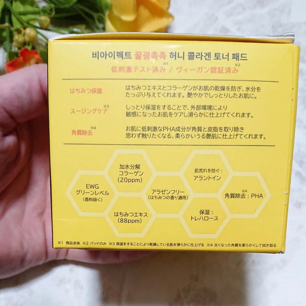 \はちみつのあま~い香りが大好物♪高保湿トナーパッド/BIAEffect(ビアエフェクト)はちみつコラーゲントナーパッド60枚140ml660円→559円(メガ割価格)パックなどのOEMを手掛けていた会社が立ち上げた韓国のスキンケアブランド、...