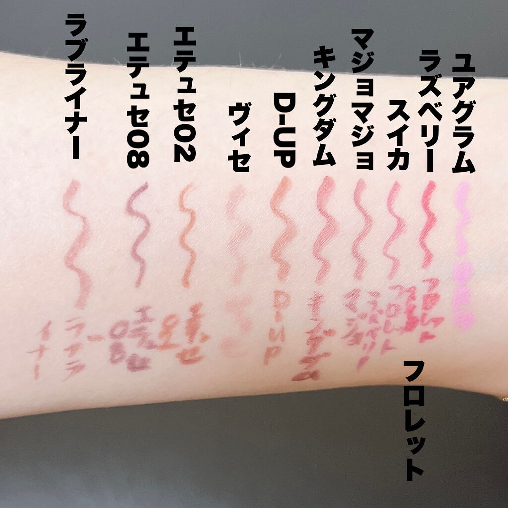 今回はマジョリカマジョルカのピュア・ピュア・キッスNEOのスウォッチ&レビューとなります!!今回はカラーがあまりにも多い為、写真投稿の都合上、腕にのみのスウォッチとなり、唇にはスウォッチしておりません、、、二投稿に分けてレビューするかも迷った...
