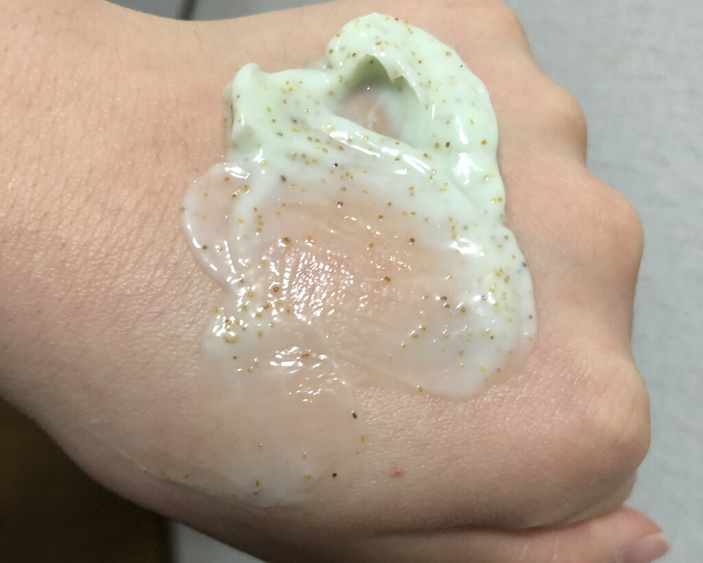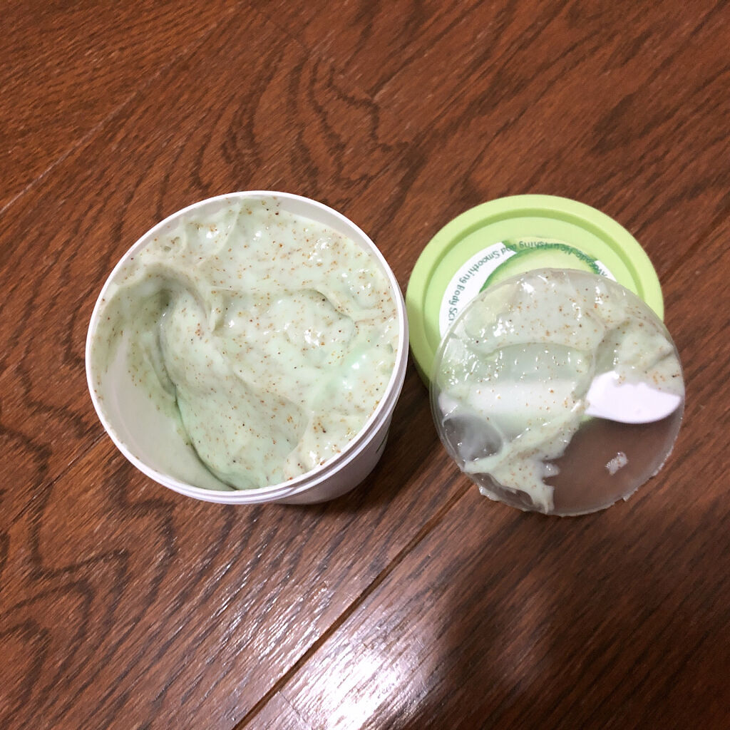 スクラブの粒は細かく程よい硬さで水分を含むと柔らかくなるので肌負担少ないと思います。 古い角質や汚れ落としてくれて使用後はツッパることも無くお肌がツルンっと滑らかになりました🤍 気になる二の腕のプツプツが滑らかになってにたので愛用してます! 黒ずみにも良いそうなので、肘、膝にも顎周りも使ってます♪ 爽やかなベルガモットの柑橘系の香りがとても良く気分もほぐれます。