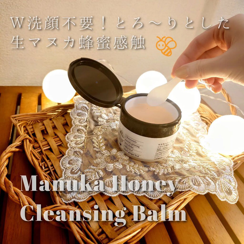 マヌカハニークレンジングバーム🍯.付属のスパチュラでバームを肌にのせて、肌温にとろりととろけるバームは、メイクの上でくるくるするとスルスルメイクと馴染む❤︎.マヌカハニーのおかげか、私は洗い上がりのしっとり感が感じられて満足🫶.抗菌成分を含む...