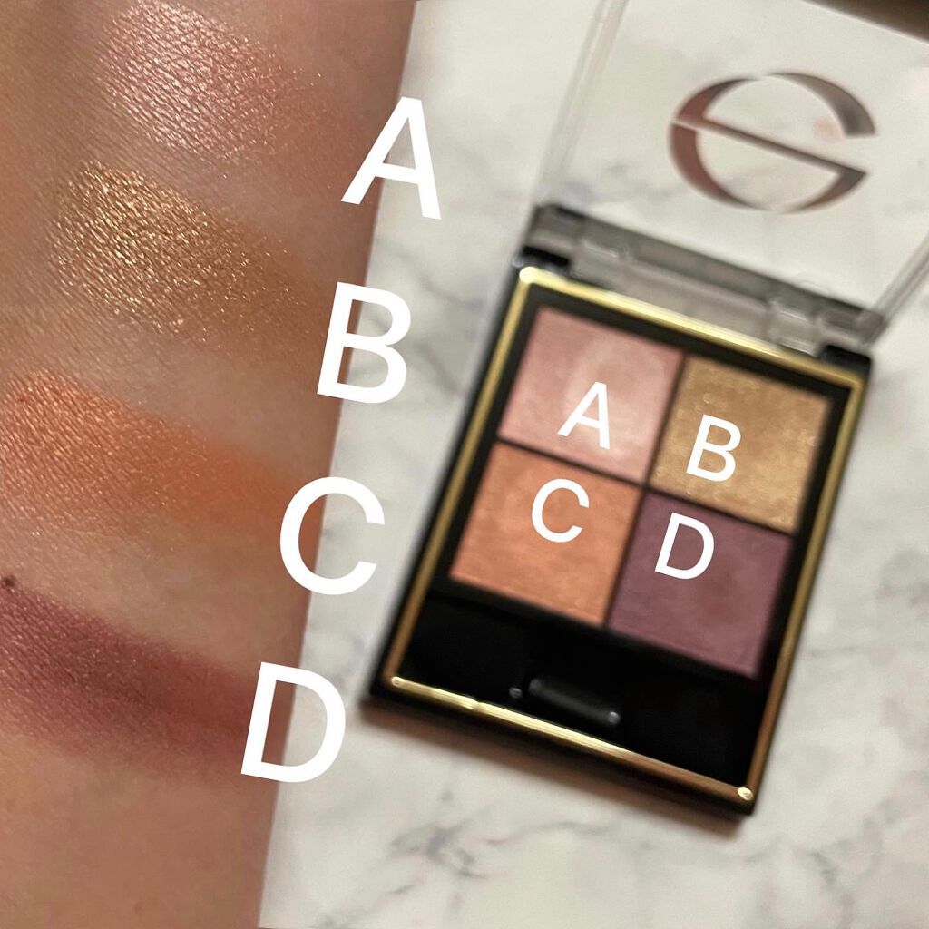 - 1.重ねてもくすまないクリアな発色。ナチュラルに溶け合う絶妙4カラー。 ツヤタイプ(左上・左下カラー):アイホール全体にぼかしたり、目尻へのポイント使いも。 ラメタイプ(右上カラー):アイホール中心や下まぶたにきらめきのアクセント。 マットタイプ(右下カラー):単色で陰影を付けたり、ツヤタイプと重ねてニュアンスをプラス。 2.うっとりするほどリッチな質感で粉飛びしないのに、軽いタッチで伸びて重ねやすいテクスチャー。 3.スクワラン(保湿)配合で目元の乾燥を防ぎます。 [PERFORMANCE] 色と質感の重ね着を楽しむ、ファッション感覚アイシャドウパレット [DESIGN] ・まぶたにひっかからない、なめらかな上質チップ ・薄型コンパクトだからポーチの中でかさばらない [QUALITY] 1.重ねてもくすまないクリアな発色 ナチュラルに溶け合う絶妙4カラー 2.パールの重ね技でまぶたに極上のツヤ感 微細多色 カラーパール 銀コーティング ガラスパール* excel GOLD-MIX処方(金パール配合)* (*右上のシャイニーカラーのみ) 3.うっとりするほどリッチな質感で粉飛び知らず!なのに、軽いタッチで伸びて重ねやすい 4.スクワラン(保湿)配合で目元の乾燥を防ぐ
