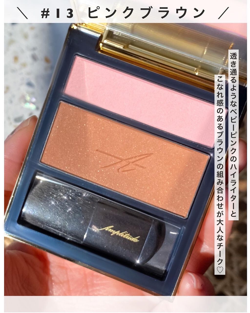 アンプリのベーシック系のカラーの中でもひときわニュートラルな、色味を削いだようなベージュブラウン。 こちらも少し前(7/30)にレビューしているのでそちらもご参考いただけたら🙇♀️ このパレットはベーシックでありながらトレンド感もあるところがお気に入りポイントでして、ちょっとセピアを帯びたようなくすみ感がなんとも言えずお洒落な雰囲気を醸し出してくれます。 というのは全体的に肌に馴染むようなヌーディカラーで構成されたすごくナチュラルなシェードなんだけど、シルバー系のパールが潜んでいたり、少しくすみ感があったりと、甘さを取り除いてクールな仕上がりになるところがめちゃくちゃかっこいいのよ。 ダイヤモンドを彷彿とさせるような大粒のラメの煌めきがたまらなく美しいアイカラーです。 このパレットの好きなところは、マットが主役なところ。絶妙にニュアンスの異なる3色のマットでグラデーションしやすいのがミソです。 パールカラーの入れ方次第で表情が変わるパレットだと思う。