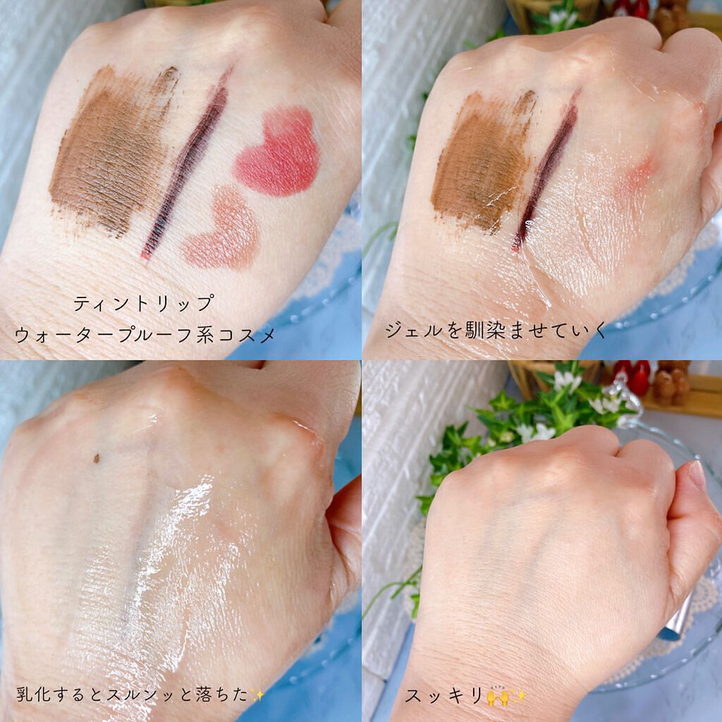 - 【使用方法】 手と肌が乾いた状態でお使いください。 ジェルを適量出し、肌の上でやさしく転がすようにメイク汚れとなじませ、オイル状に変わったら水またはぬるま湯で洗い流してください。 【使用上の注意 / 保存方法】 ◇肌に異常が生じていないかよく注意して使用してください。 ◇肌に傷・はれもの・湿疹など異常のある時は使用しないでください。 ◇使用中(または使用した肌に直射日光があたり)、赤み・はれ・かゆみ・刺激・色抜け(白斑など)や黒ずみなどの異常があらわれた場合は使用を中止してください。そのまま使用を続けると、症状を悪化させることがあるので、皮膚科専門医などにご相談されることをおすすめします。 ◇目に入らないようにご注意ください。目に入った場合は、すぐに水かぬるま湯で洗い流してください。異常が残る場合は、眼科医にご相談ください。 ◇開封後は、なるべく早く使い切るようにしてください。 ◇乳幼児の手の届かないところに保管してください。 ◇直射日光のあたる場所、極端に低温又は高温、多湿の場所を避けて保管してください。 ◇植物由来成分を配合しておりますので、色や臭いに若干差が生じる場合などがありますが品質には問題ありません。 ◇落ちにくいポイントメイクには専用リムーバーのご使用をおすすめします。 ◇使用後は必ずキャップをしっかりと閉めてください。