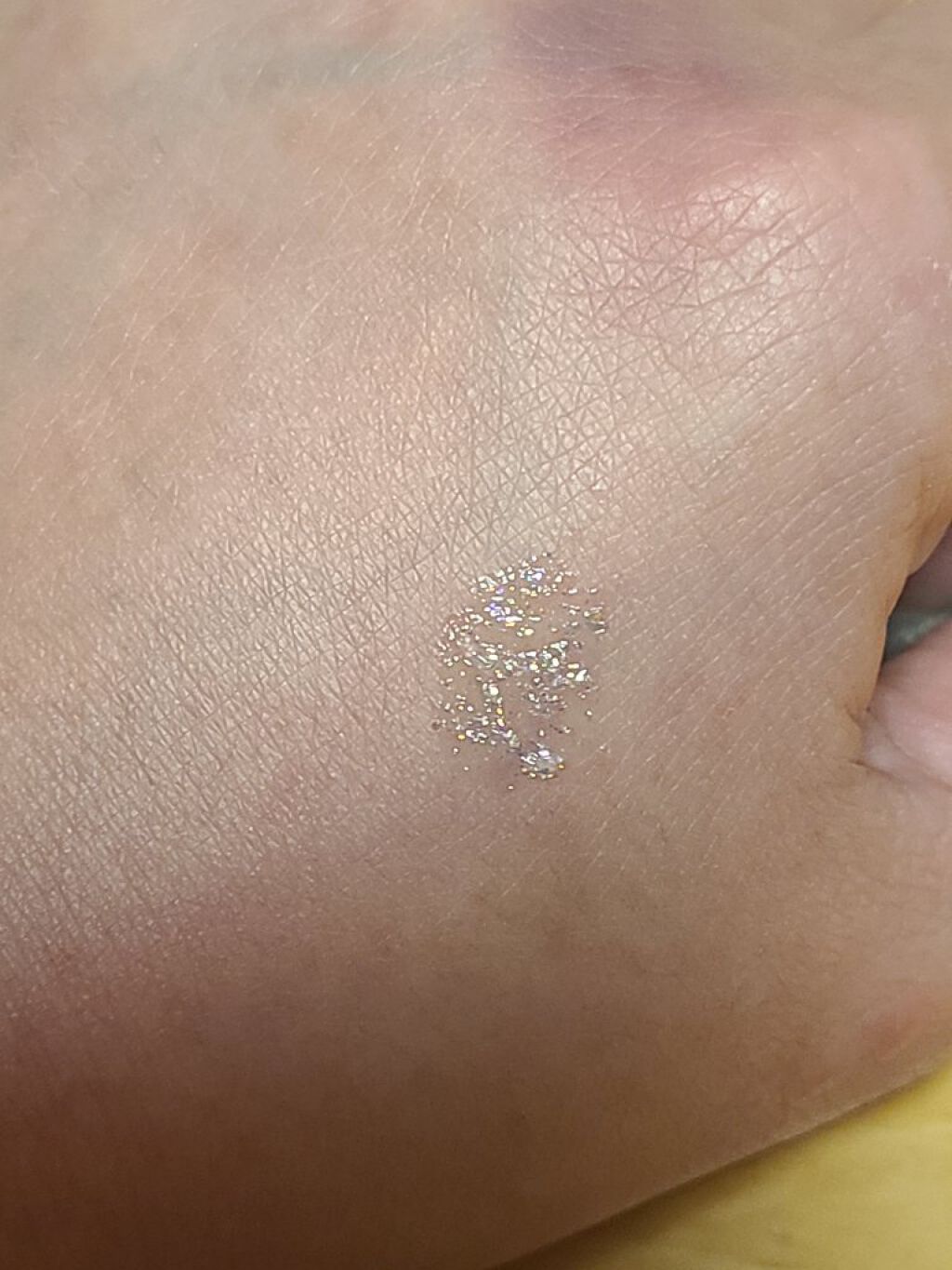 細かいラメと大きめのホログラムが混じっています꒰ˆ•ﻌ•ˆ꒱ 瞬きする度にキラキラしてかわいいです。 よく見ると色々なカラーのラメでてきていますがつけると自然ですฅʕ •ﻌ• ʔฅ