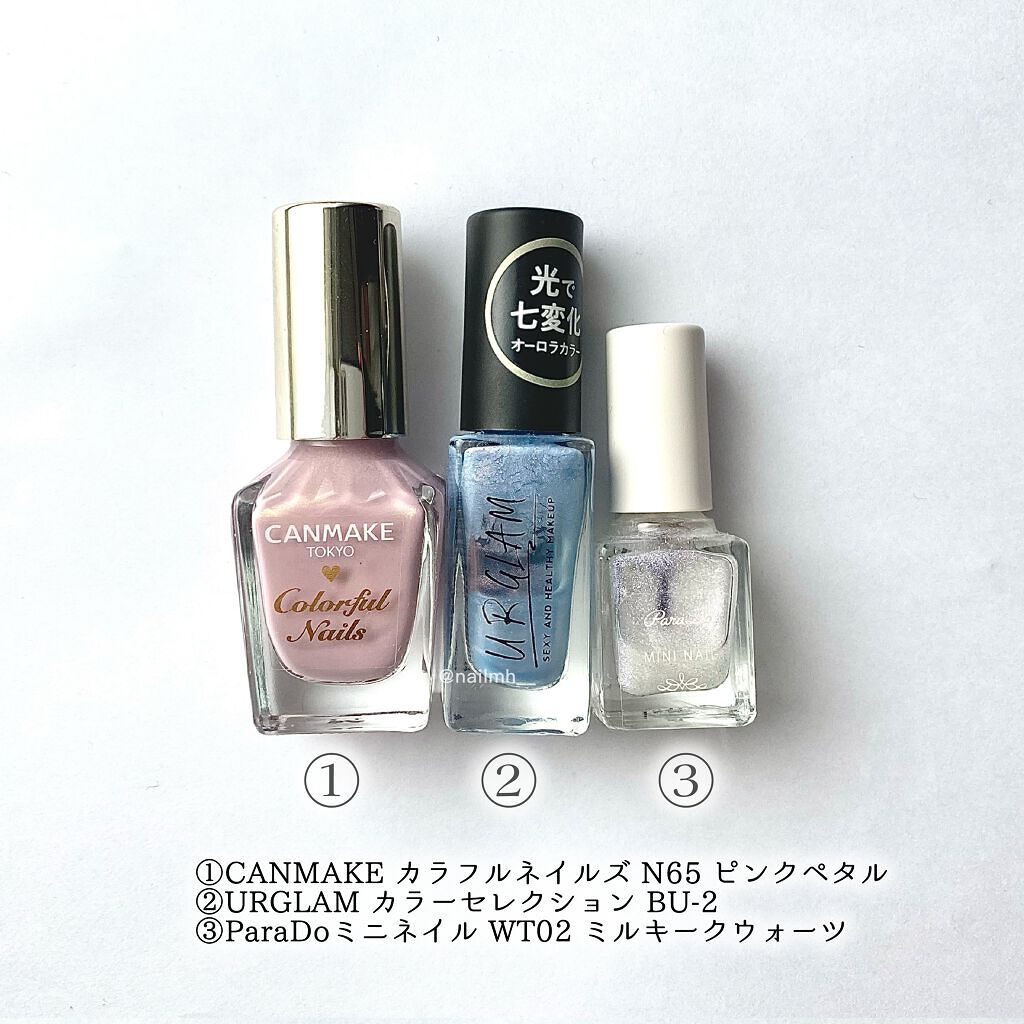 美しすぎる青ラメネイル💎 皆さん、青ラメは好きですか?私は青ラメ大好きです🥹💙 こちらのカラーはシアーなミルキーホワイトに角度によってきらめくブルーの偏光ラメが配合されています! このネイルはベースのカラーがかなり薄付きなので他の色の上に重ねたり、ニュアンスネイルなんかの一部分に使用するなどアレンジの幅が広く使いやすいのもおすすめポイント!