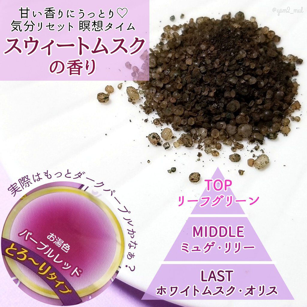 | ボディケアランキング第12位 | 深呼吸しながらゆったり湯船に浸かりたい時にピッタリの落ち着いた香りの入浴剤です! | 詳細を見る | |