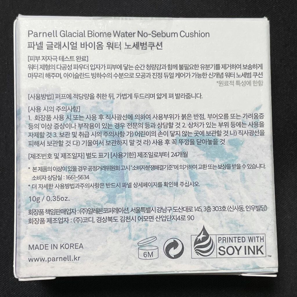 商品詳細情報parnell グラシアル バイオーム ウォーター ノーセバム クッション