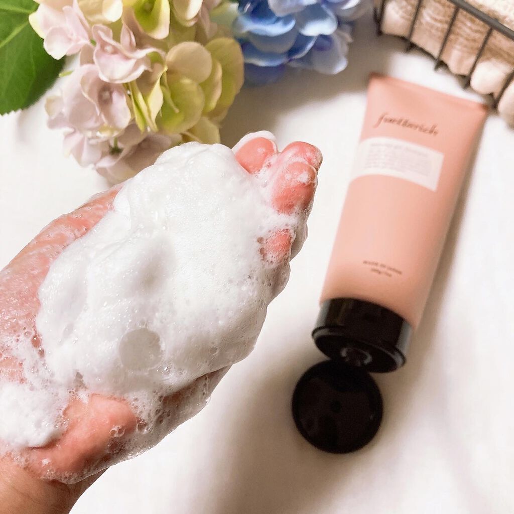もずくみたいな色でとろっとしたジェルです。 パチパチっと泡泡してメイクや汚れを浮かし出してくれます。 洗い心地はツルッツル♪ もずくをはじめとした沖縄天然由来の成分がメイクをしっかりオフしつつ、潤いとハリもしっかり与えてくれます。 たっぷりの炭酸が配合された泡で血流が促進されてめぐりが良くなる感じ。 くすみが晴れてパーっと明るくなりますよ。 毛穴にパチパチ優しい刺激で浸透していく感じがクセになりそうな使用感です。