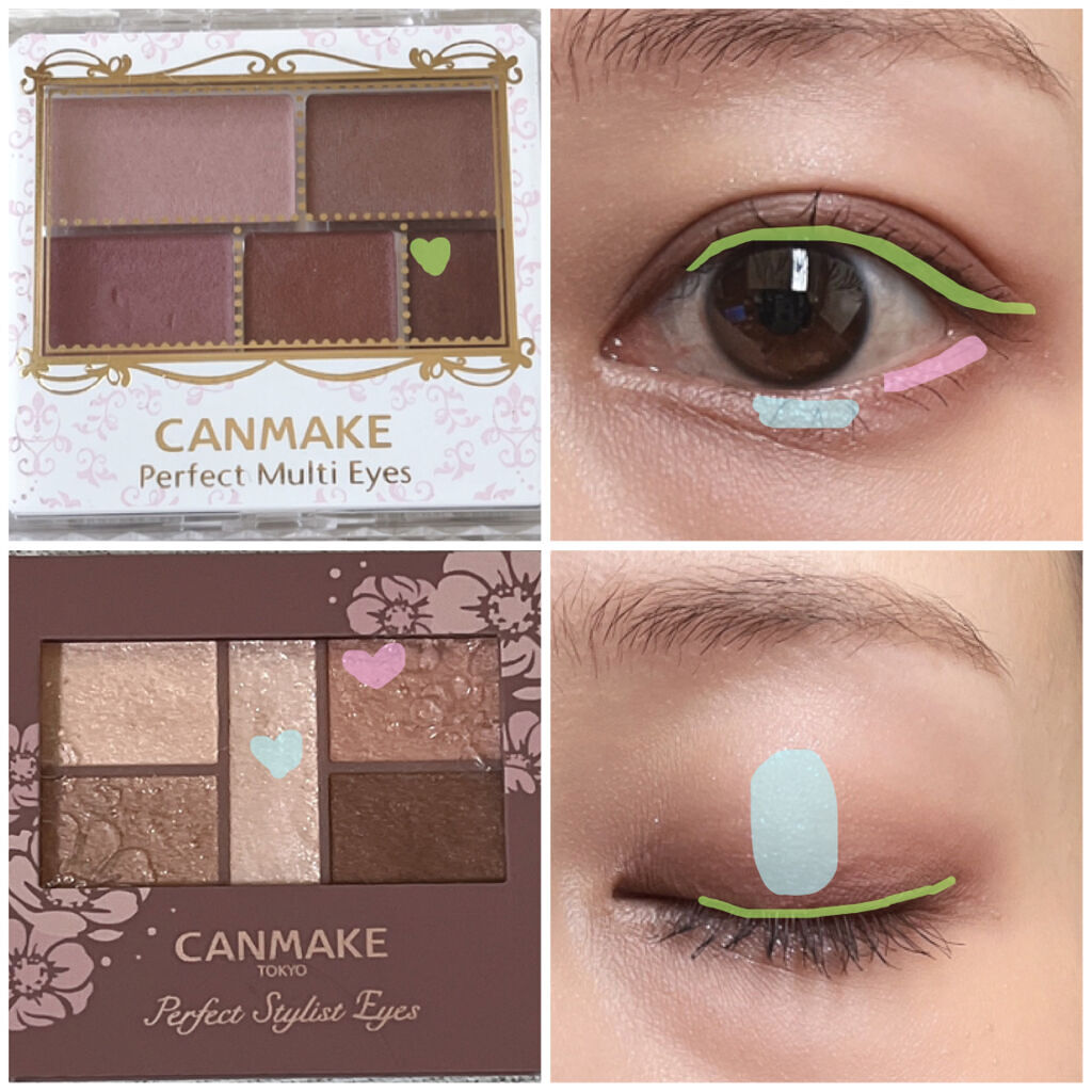 \ナチュラルキャンメイクメイク/♡••••♡CANMAKEパーフェクトマルチアイズ09ロゼパンナコッタジュエリーシャドウベール06バレリーナベージュクリーミータッチライナー11クラウディーグレー♡••••♡マスカラ以外キャンメイクを使ってメイ...