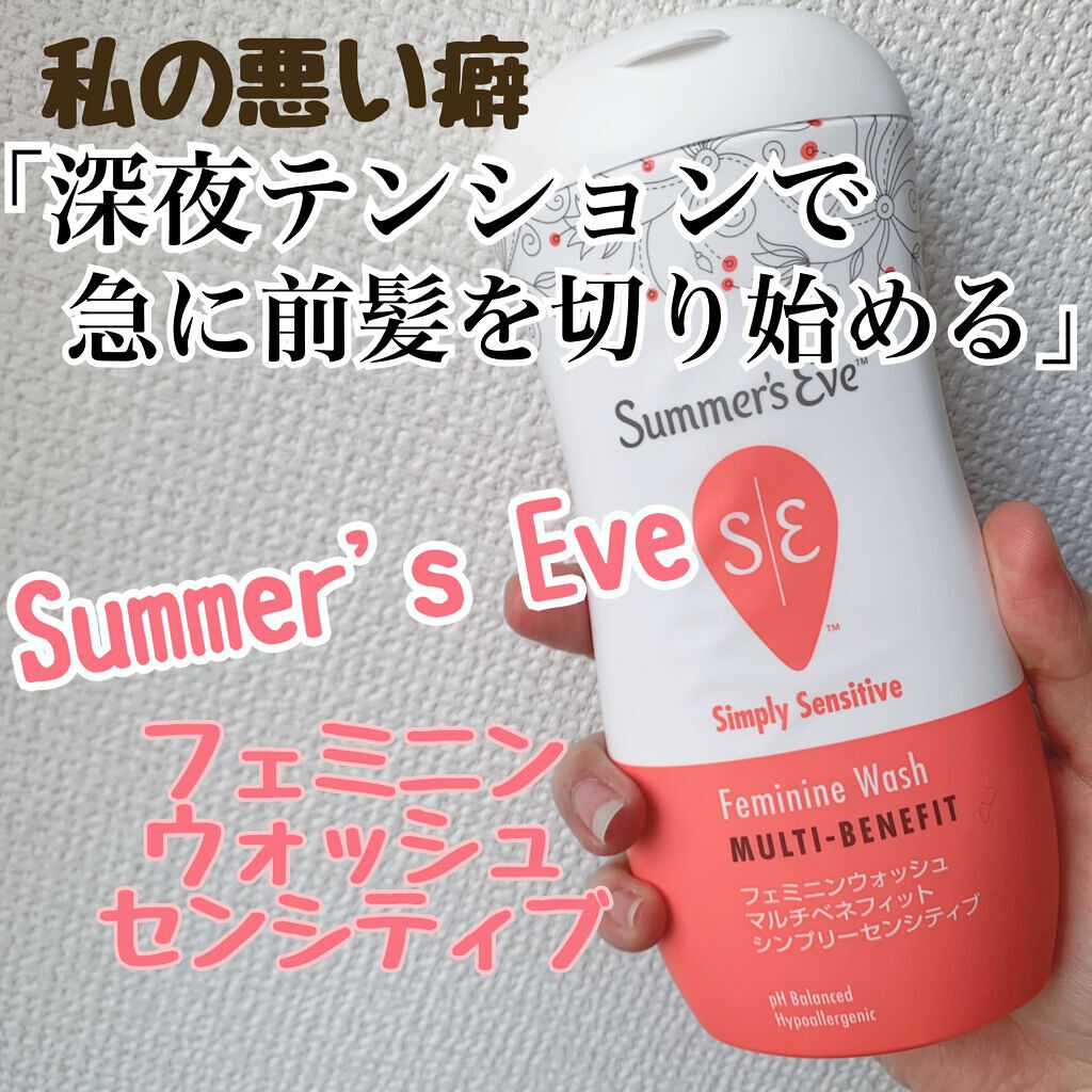 - 肌に優しい使い心地のデリケートゾーン用ボディウォッシュです。デリケートな肌phに合わせてつくられた弱酸性設計。「マルチベネフィット デイリーバランス」よりも、さらに穏やかな処方でつくられた敏感肌用で、香りも抑えめです。潤いをキープしながら、気になるデリケートな汚れをさっぱりクレンジングします。 デリケートゾーンのニオイ*やムレ、カサツキなどに悩まれている方にもおすすめです。 *古い角質や汚れによる 【日米話題のデリケートゾーンケアブランド】 Summer’s Eve(サマーズイブ)は、アメリカで生まれたデリケートゾーンケアブランドです。1972年から、フェムテック分野のパイオニアとして、世界30カ国以上で販売しています。日本での販売は2013年から。アメリカ、日本の両国でデリケートゾーンケアの売上シェア1位*を獲得しています。 *IRI Market Advantageデータ 米国婦人衛生用品ブランド別金額シェア2020年12月調べ(12カ月計) *富士経済「美容家電・化粧雑貨マーケティングトレンドデータ2018」マーケットシェア、デリケートゾーン用洗浄・シート市場、金額ベース、2016年実績 【専門機関による各種テストを実施】 安全性使用テストを発売前にすべての製品で実施 ③パッチテスト*:専門機関監修のもと、一定期間使用し、肌にアレルギー症状が出ないかテスト済 ④エチケット効果テスト:サマーズイブを使用してエチケット対策の変化に関するテストを実施 *すべての方にアレルギーや刺激が起こらないわけではありません。