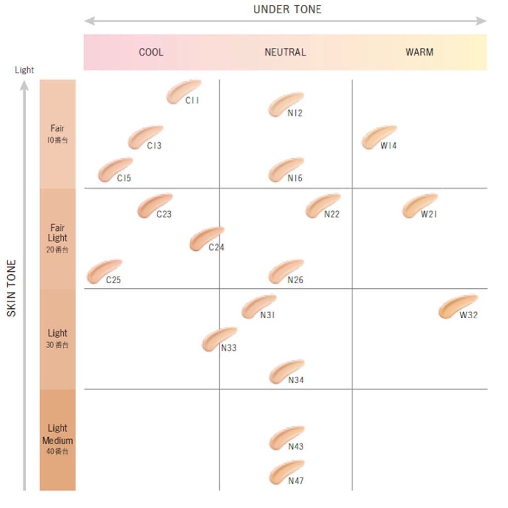 - <C11> 水、シクロメチコン、タルク、ジメチコン、エタノール、トリフルオロアルキルジメチルトリメチルシロキシケイ酸、メトキシケイヒ酸エチルヘキシル、イソノナン酸イソトリデシル、安息香酸アルキル(C12-15)、ビス(PEG/PPG-14/14)ジメチコン、シリカ、アストロカリウムムルムル種子脂、シロキクラゲエキス、ゼニアオイエキス、ダマスクバラ花エキス、テトラヘキシルデカン酸アスコルビル、トコフェロール、ヒアルロン酸Na、マツリカ花エキス、レモン果実エキス、BG、BHT、PEG-9ポリジメチルシロキシエチルジメチコン、(アクリレーツ/アクリル酸エチルヘキシル/メタクリル酸ジメチコン)コポリマー、(チタン/酸化チタン)焼結物、(フッ化/水酸化/酸化)/(Mg/K/ケイ素)、キサンタンガム、ジステアルジモニウムヘクトライト、ジフェニルシロキシフェニルトリメチコン、スクワラン、ステアリン酸、トリエトキシカプリリルシラン、ラウロイルリシン、レシチン、塩化Na、含水シリカ、合成フルオロフロゴパイト、酸化スズ、酸化ポリエチレン、水酸化Al、水添ポリイソブテン、麻セルロース、フェノキシエタノール、香料、酸化チタン、酸化亜鉛、酸化鉄 <C13> 水、シクロメチコン、タルク、ジメチコン、エタノール、トリフルオロアルキルジメチルトリメチルシロキシケイ酸、メトキシケイヒ酸エチルヘキシル、イソノナン酸イソトリデシル、安息香酸アルキル(C12-15)、ビス(PEG/PPG-14/14)ジメチコン、シリカ、アストロカリウムムルムル種子脂、シロキクラゲエキス、ゼニアオイエキス、ダマスクバラ花エキス、テトラヘキシルデカン酸アスコルビル、トコフェロール、ヒアルロン酸Na、マツリカ花エキス、レモン果実エキス、BG、BHT、PEG-9ポリジメチルシロキシエチルジメチコン、(アクリレーツ/アクリル酸エチルヘキシル/メタクリル酸ジメチコン)コポリマー、(チタン/酸化チタン)焼結物、(フッ化/水酸化/酸化)/(Mg/K/ケイ素)、キサンタンガム、ジステアルジモニウムヘクトライト、ジフェニルシロキシフェニルトリメチコン、スクワラン、ステアリン酸、トリエトキシカプリリルシラン、ラウロイルリシン、レシチン、塩化Na、含水シリカ、合成フルオロフロゴパイト、酸化スズ、酸化ポリエチレン、水酸化Al、水添ポリイソブテン、麻セルロース、フェノキシエタノール、香料、酸化チタン、酸化亜鉛、酸化鉄 <C15> 水、シクロメチコン、タルク、ジメチコン、エタノール、トリフルオロアルキルジメチルトリメチルシロキシケイ酸、メトキシケイヒ酸エチルヘキシル、イソノナン酸イソトリデシル、安息香酸アルキル(C12-15)、ビス(PEG/PPG-14/14)ジメチコン、シリカ、アストロカリウムムルムル種子脂、シロキクラゲエキス、ゼニアオイエキス、ダマスクバラ花エキス、テトラヘキシルデカン酸アスコルビル、トコフェロール、ヒアルロン酸Na、マツリカ花エキス、レモン果実エキス、BG、BHT、PEG-9ポリジメチルシロキシエチルジメチコン、(アクリレーツ/アクリル酸エチルヘキシル/メタクリル酸ジメチコン)コポリマー、(チタン/酸化チタン)焼結物、(フッ化/水酸化/酸化)/(Mg/K/ケイ素)、キサンタンガム、ジステアルジモニウムヘクトライト、ジフェニルシロキシフェニルトリメチコン、スクワラン、ステアリン酸、トリエトキシカプリリルシラン、ラウロイルリシン、レシチン、塩化Na、含水シリカ、合成フルオロフロゴパイト、酸化スズ、酸化ポリエチレン、水酸化Al、水添ポリイソブテン、麻セルロース、フェノキシエタノール、香料、酸化チタン、酸化亜鉛、酸化鉄 <C23> 水、シクロメチコン、タルク、ジメチコン、エタノール、トリフルオロアルキルジメチルトリメチルシロキシケイ酸、メトキシケイヒ酸エチルヘキシル、イソノナン酸イソトリデシル、安息香酸アルキル(C12-15)、ビス(PEG/PPG-14/14)ジメチコン、シリカ、アストロカリウムムルムル種子脂、シロキクラゲエキス、ゼニアオイエキス、ダマスクバラ花エキス、テトラヘキシルデカン酸アスコルビル、トコフェロール、ヒアルロン酸Na、マツリカ花エキス、レモン果実エキス、BG、BHT、PEG-9ポリジメチルシロキシエチルジメチコン、(アクリレーツ/アクリル酸エチルヘキシル/メタクリル酸ジメチコン)コポリマー、(チタン/酸化チタン)焼結物、(フッ化/水酸化/酸化)/(Mg/K/ケイ素)、キサンタンガム、ジステアルジモニウムヘクトライト、ジフェニルシロキシフェニルトリメチコン、スクワラン、ステアリン酸、トリエトキシカプリリルシラン、ラウロイルリシン、レシチン、塩化Na、含水シリカ、合成フルオロフロゴパイト、酸化スズ、酸化ポリエチレン、水酸化Al、水添ポリイソブテン、麻セルロース、フェノキシエタノール、香料、酸化チタン、酸化亜鉛、酸化鉄 <C24> 水、シクロメチコン、タルク、ジメチコン、エタノール、トリフルオロアルキルジメチルトリメチルシロキシケイ酸、メトキシケイヒ酸エチルヘキシル、イソノナン酸イソトリデシル、安息香酸アルキル(C12-15)、ビス(PEG/P