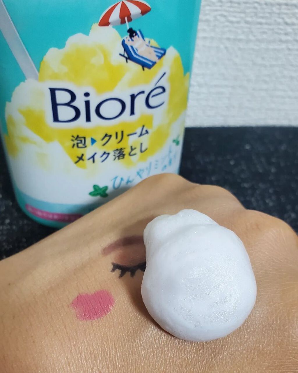数量限定発売のビオレ泡クリームメイク落としのひんやりミントの香りを使いました。ポンプ式の容器に入っていて、プッシュ部分が大きいので押しやすいです。白色の軽くきめの細かい泡でほのかにミントの香りと清涼感が感じられます。メイクにビオレ泡クリームメ...