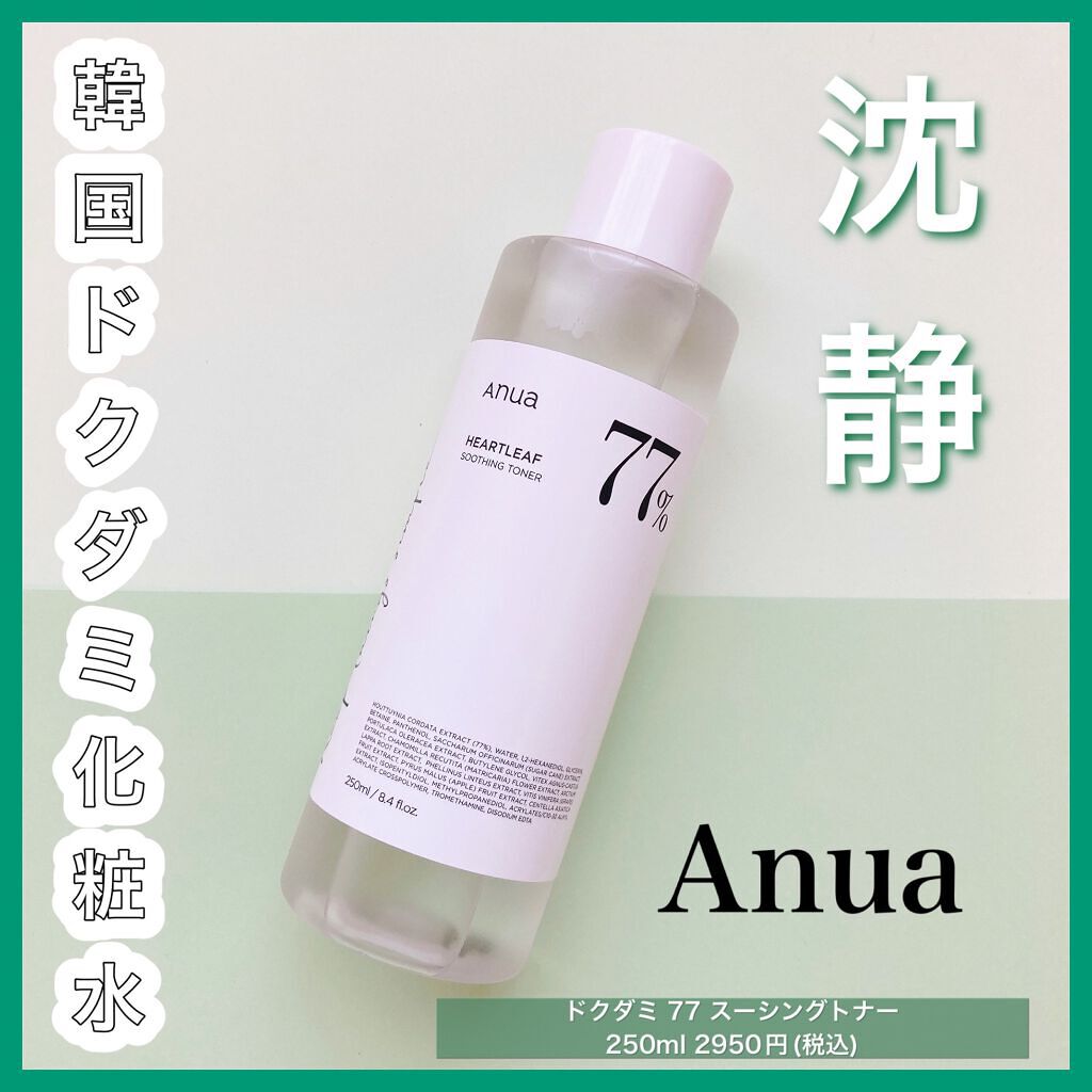 韓国のスキンケアブランドAnua✨️ この、Anuaドクダミ77 スージングトナーは、ドクダミエキスを77%含有しているトナーで、ドクダミは、抗炎症作用や鎮静効果があり、敏感肌やトラブル肌のケアに適しています!!! 本当に鎮静効果が強い。肌が落ち着いてくれる! 肌の鎮静・冷却効果、炎症を抑えてくれる効果があるから、紫外線の時期にも助かるし、水分補給・保湿効果もじゅうぶんだから、乾燥する季節にもぴったり! 特に敏感肌や肌荒れ、ニキビが気になる方におすすめのトナーです。