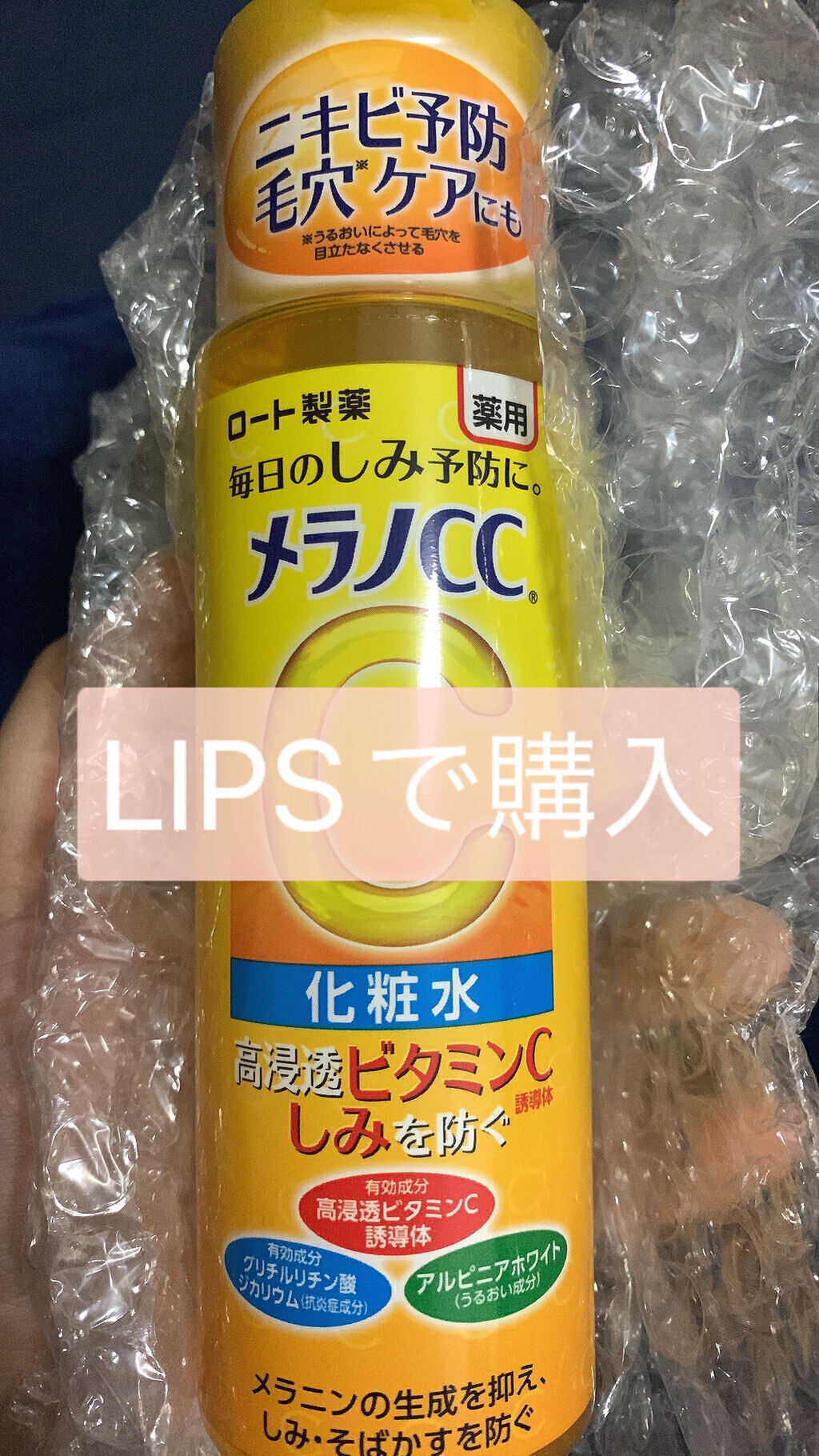 - 「メラノCC 薬用しみ対策 美白化粧水」は、顔全体にうるおいを与えながら、しみ対策できる薬用美白化粧水。 美白有効成分高浸透ビタミンC誘導体*1が角質層すみずみまで浸透し、メラニンの生成を抑え、しみ・そばかすを防ぎ、透明感のある肌へと導きます。 また、抗炎症成分*2と3種のうるおい成分*3を配合。ニキビ痕が気になる肌にもうるおいを与え、肌を整えます。 さわやかな柑橘系の香りです。 *1:3-O-エチルアスコルビン酸 *2:グリチルリチン酸ジカリウム *3:アルピニアホワイト、レモンエキス、グレープフルーツエキス