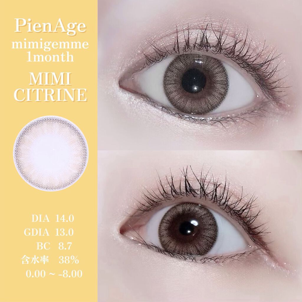 瞳に馴染むナチュラルグレー じゅわっとした発色に内側のオレンジが 印象的なデザイン👀✨ じゅわっとしたブラウンカラーに 内側の明るめブラウンでしっかり盛る👀 内側のイエローとオレンジで瞳が映える配色 自然なトーンアップでフチありだから 同じ着色直径でも瞳の印象が全然違うよ👀 ブルーとブラウンのミックスで自然な発色 ブルーが入っているから瞳に透明感がでて綺麗👀