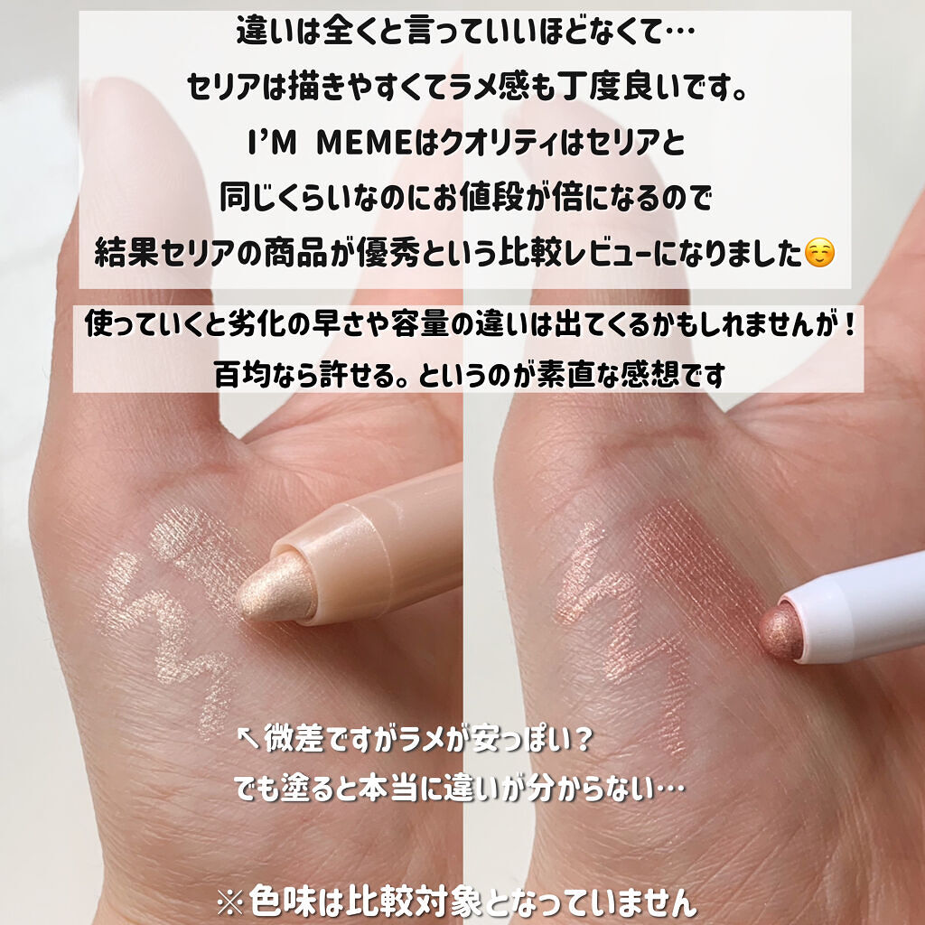 アイムミミのアイムスティックシャドウシマー001と003を比較してみました✨001はしっかりの明るさの出るシャンパンベージュカラーで、よりぷっくりとした涙袋が出来上がります🫶003はピンクカラーなので、001よりかは少し落ち着いたトーンの仕上...