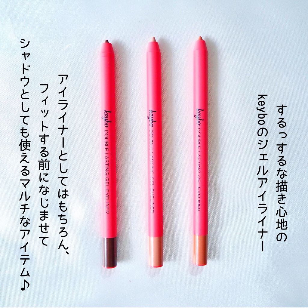 Keybo(キボ)ダブルラスティングジェルアイライナー11クリームバニラアイライナーとしてもアイシャドウとしても使えるなめらかな描きごこちのジェルアイライナー。11クリームバニラはクリーミーなベージュカラー。ラメやパールは入っていません。印象...