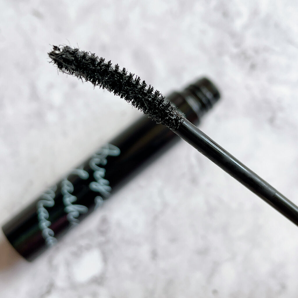 このマスカラ1つだとカールが全然なくなってしまうので 手持ちのマスカラに重ねたりして使うのがベストかな! まつ毛自体を盛りたい時にはベースに盛り系マスカラを仕込むと良さそうです👏🏻💕 ラメはシルバーラメで、付きすぎてギラギラになったり粒が大きすぎたりとかはなくて 個人的にほどよく乗ってくれるのでちょうど良い シリーズ同じとは思いますが、ブラシは大きく感じるので慣れが必要かなと感じます